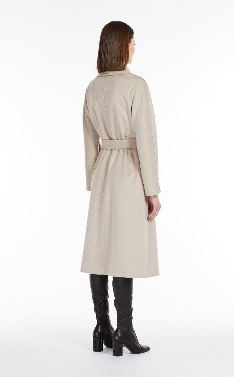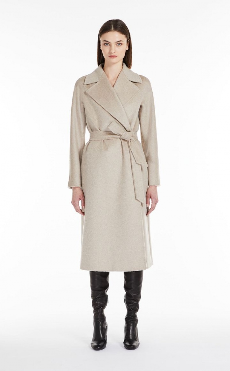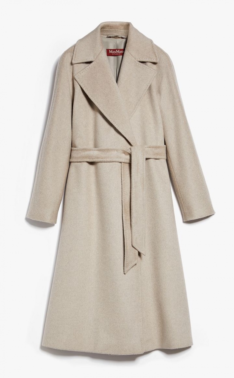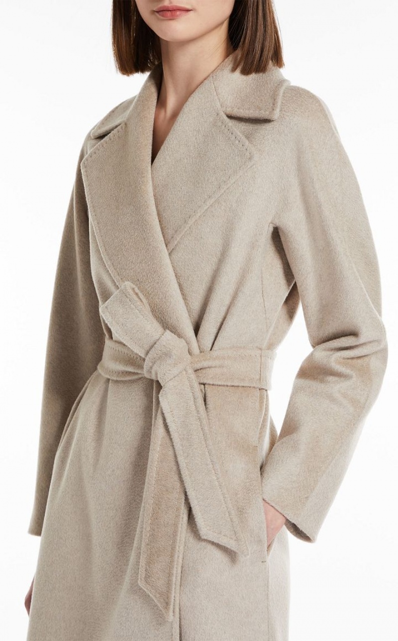 Midi wrap coat in a premium fabric made of cashmere, alpaca and wool, finished with a tailor’s pick stitch. Featuring a lapel collar, kimono sleeves and inset side pockets. Fastened with matching belt to accentuate the waist. Lined. Length: 115 cm.