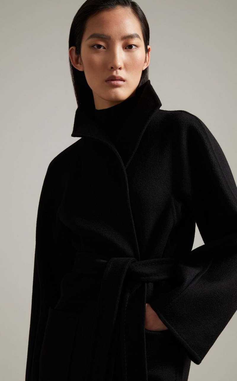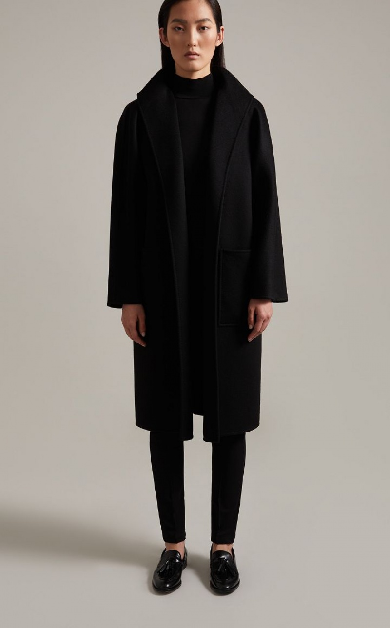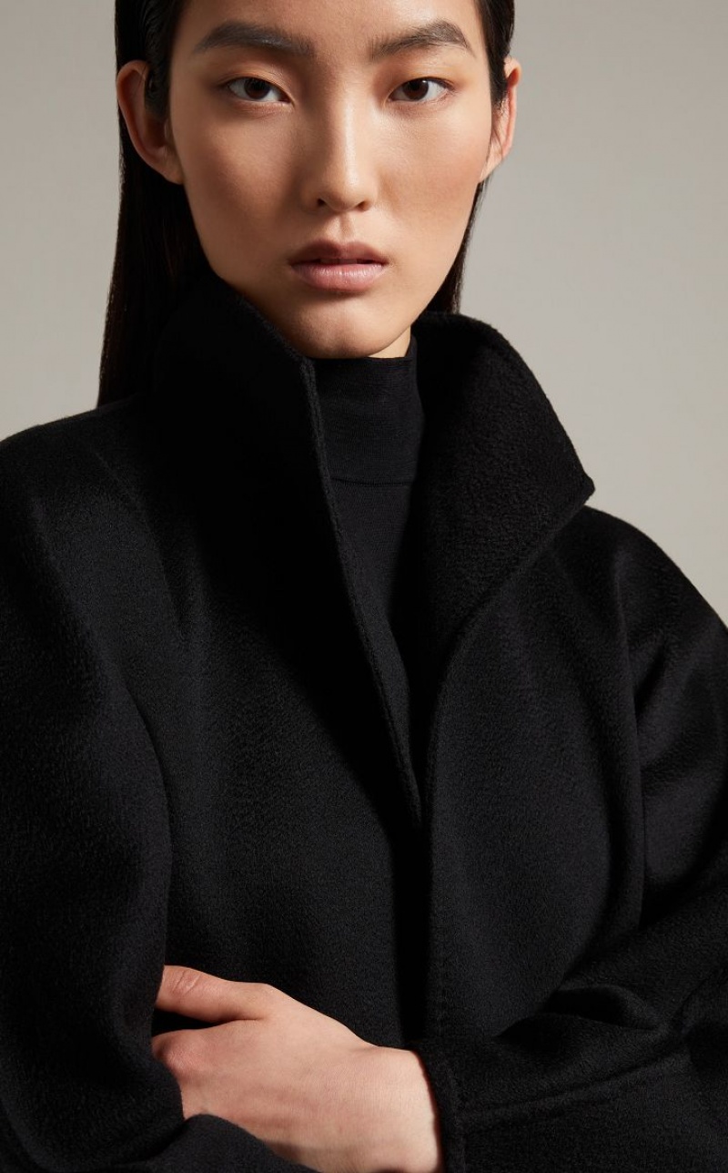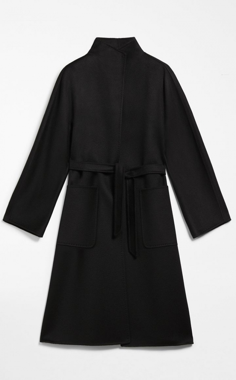 Iconic Max Mara coat featuring a cardigan-inspired straight silhouette. Made of exquisite pure double cashmere with hand-sewn sable trim, it boasts a standing collar, kimono sleeves and patch pockets. The matching belt allows you to accentuate the waist. Length: 105 cm.