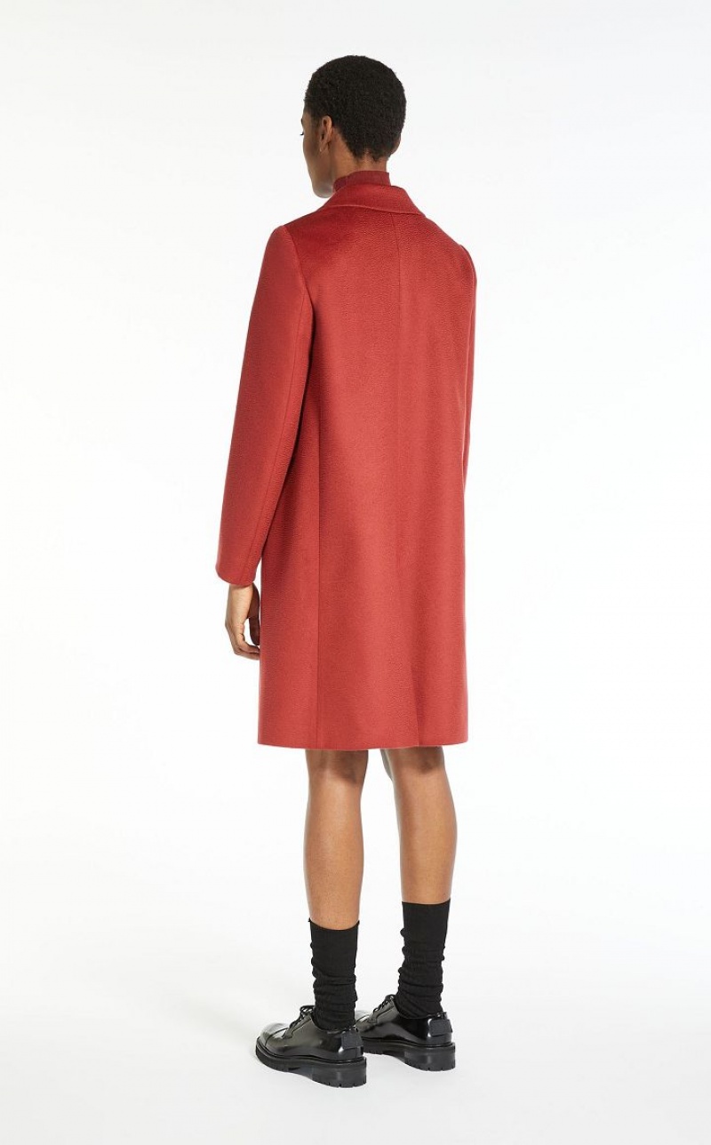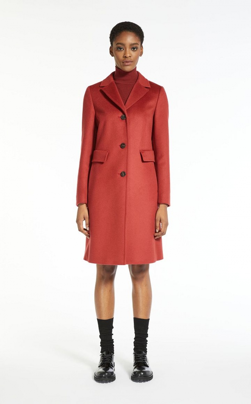 Pure wool broadcloth coat featuring lapels, long set in sleeves and flap pockets. The rear vent accentuates the garment's slightly fitted waist. Single breasted button fastening. Length: 95 cm. Lined interior.