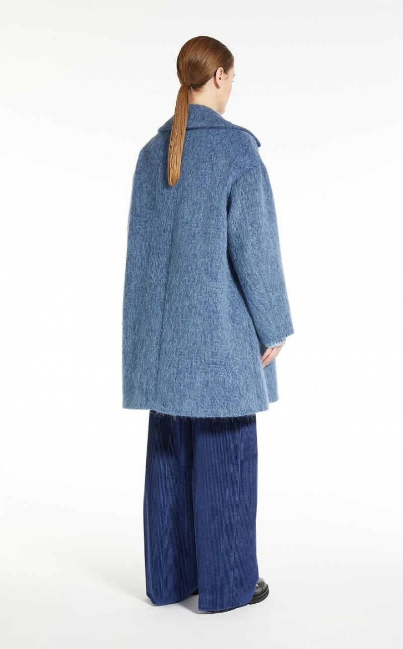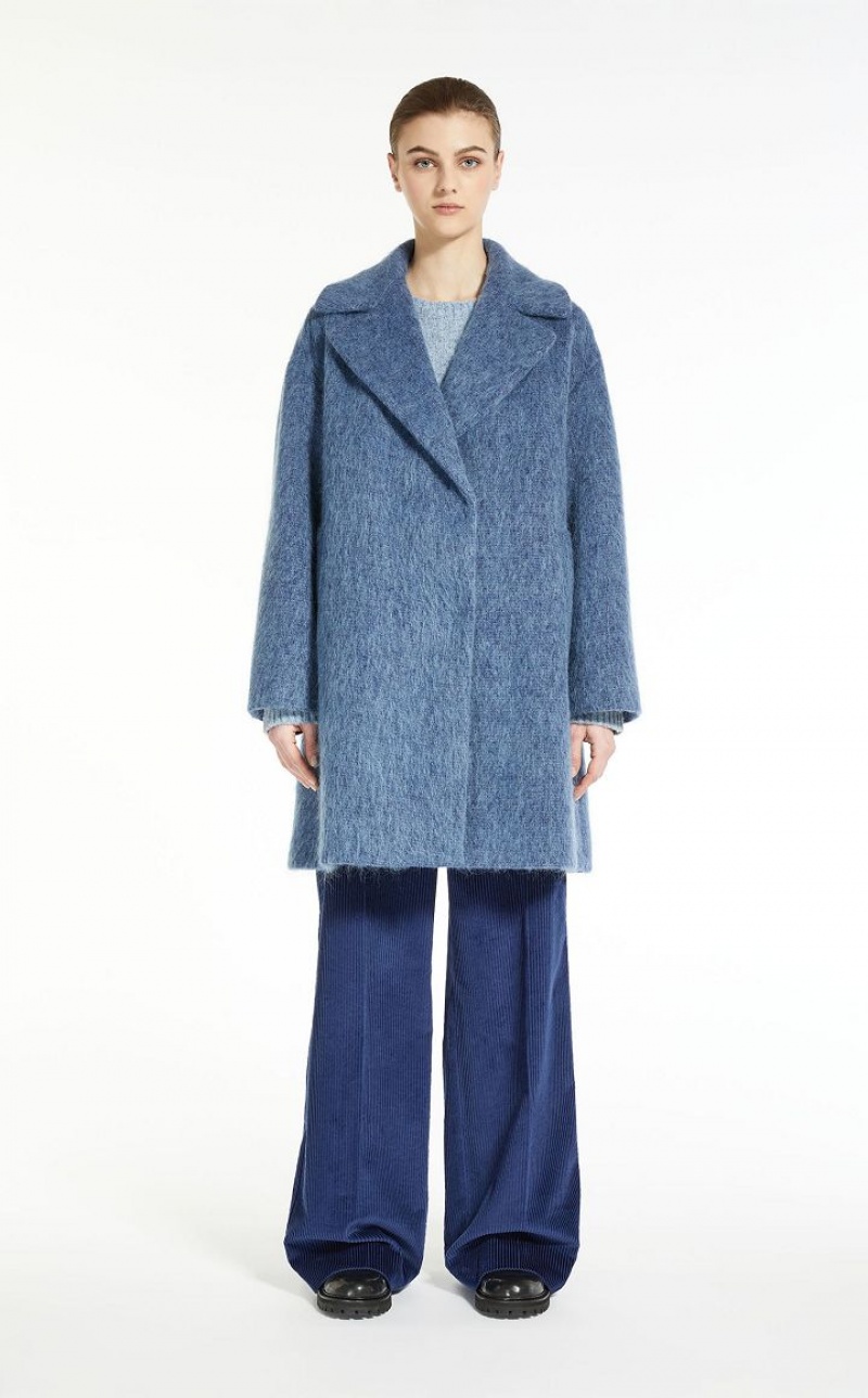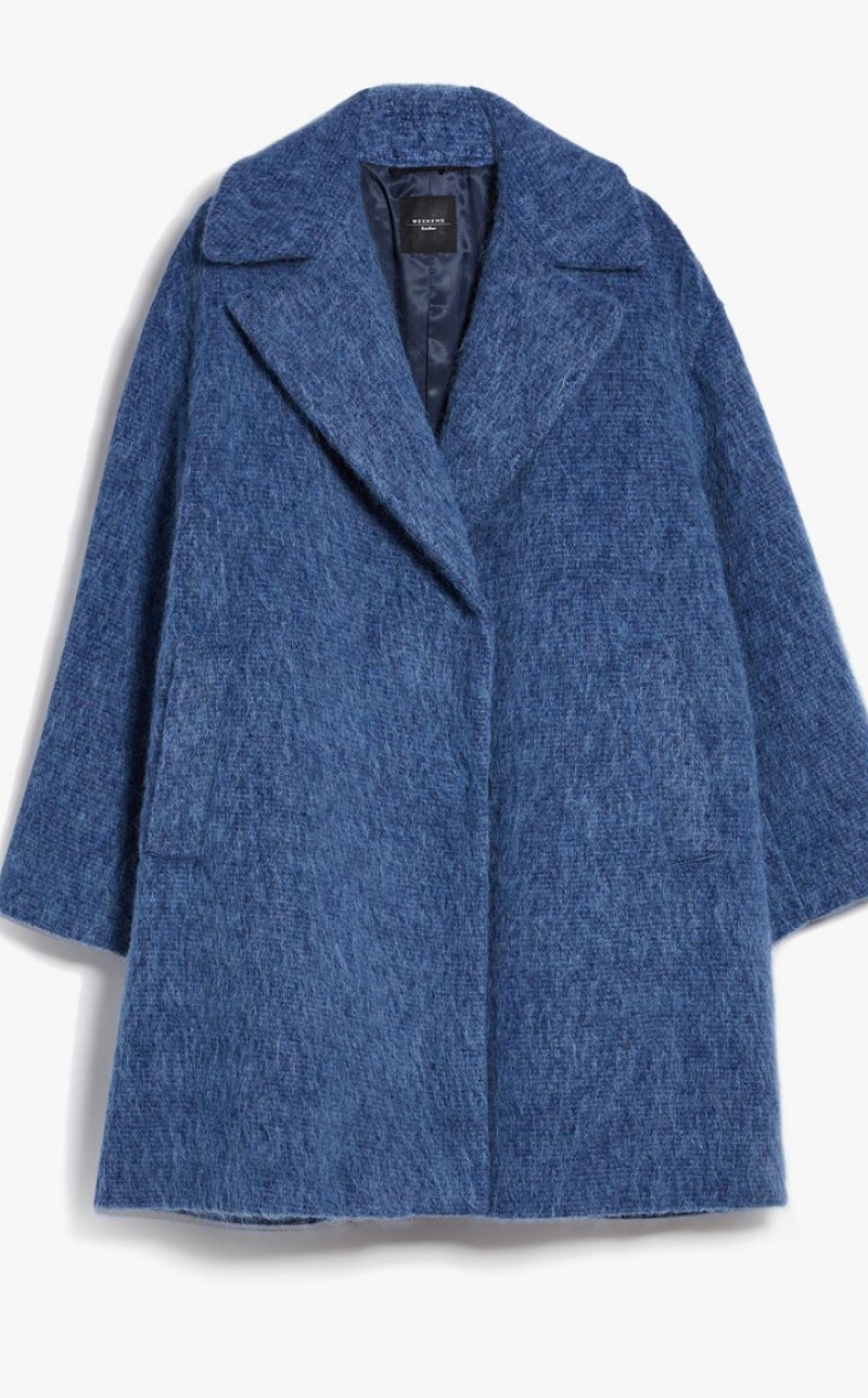 Couture style coat in wool, mohair and alpaca fabric. Wide lapel collar, long low set in sleeves and welt pockets. Concealed button fastening. Length: 90 cm. Lined interior.