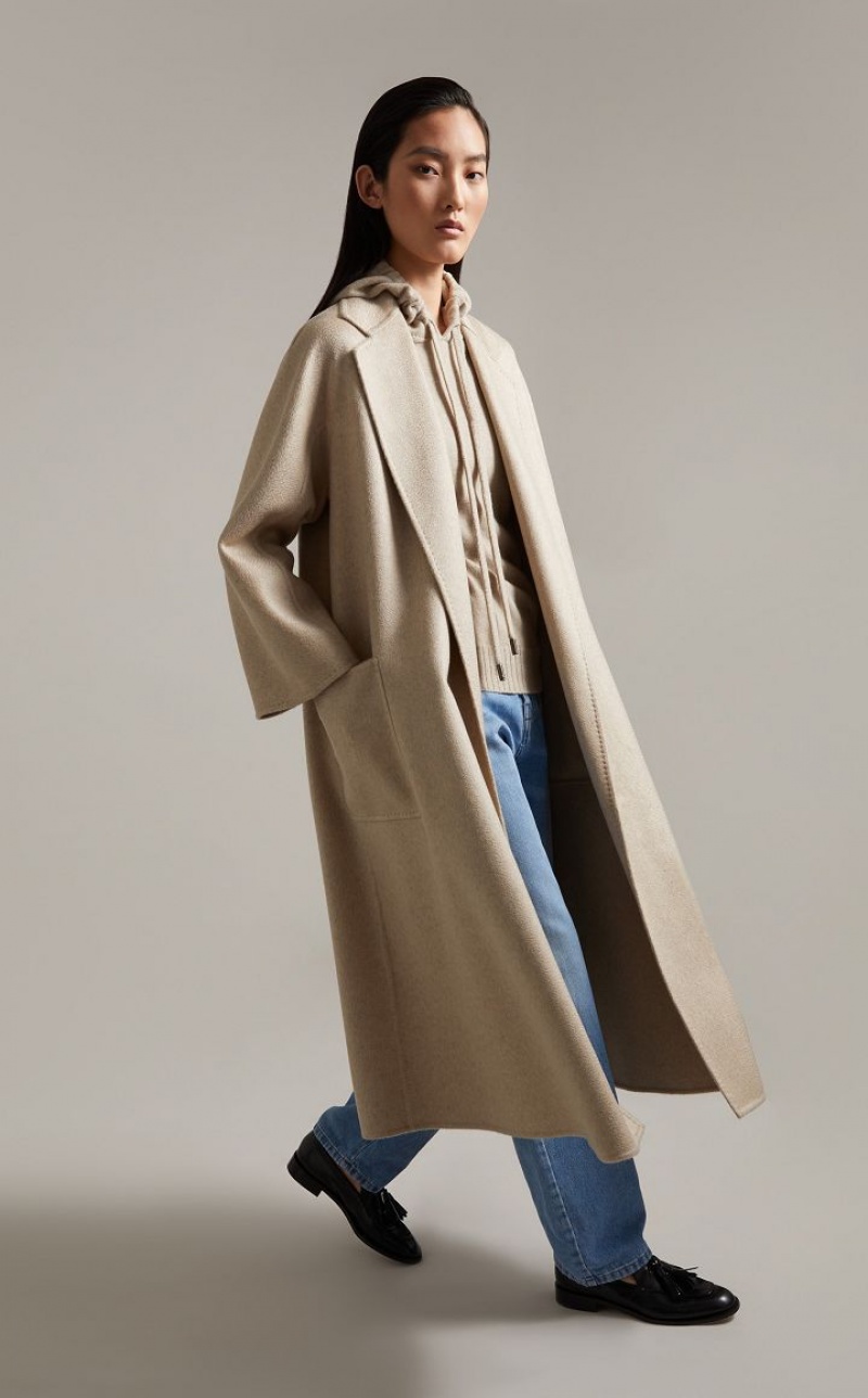 A classic from the Max Mara wardrobe, a symbol of a laid-back allure that does not sacrifice luxurious fabrics and impeccable attention to detail. Reinterpreted in 2016 and reintroduced in all the collections since then, it is one of the iconic pieces of the Max Mara style. It stands out with its generous, enveloping silhouette that embraces the body, and can be customised thanks to the coordinated belt. The kimono sleeves and large patch pockets underline its understated, refined luxury.