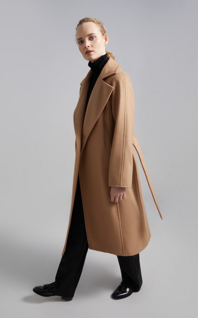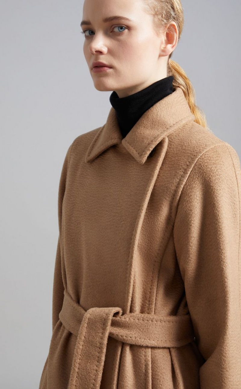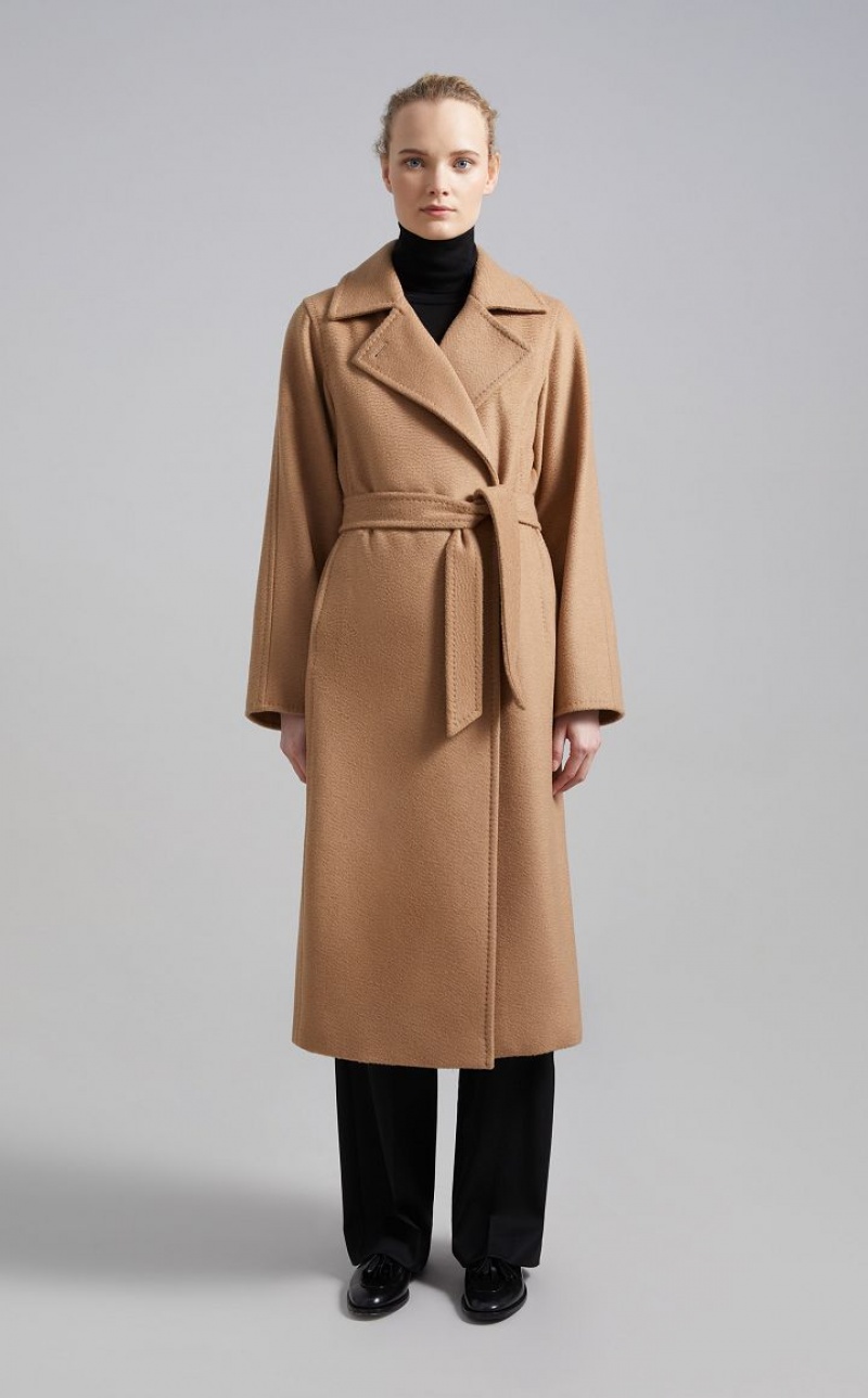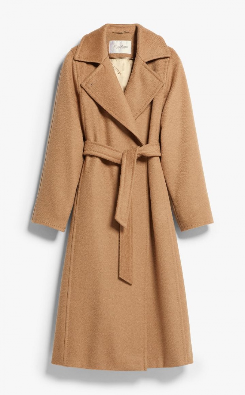 Since 1998, the Manuela wrap coat in pure camel hair designed by Anne-Marie Beretta has been telling the story of Max Mara. A story about a passion for quality and laid-back luxury to wear every day. Now considered an icon, the style transcends the seasons to become timeless. - Made of pure zibeline camel hair drap - Straight cut - Finished with tailored binding - Wide lapel collar with double-use button - Shirt-style armholes with kimono sleeves - Inset pockets in the side slits - Matching belt - Branded lining - Length: 115 cm / 45 inches