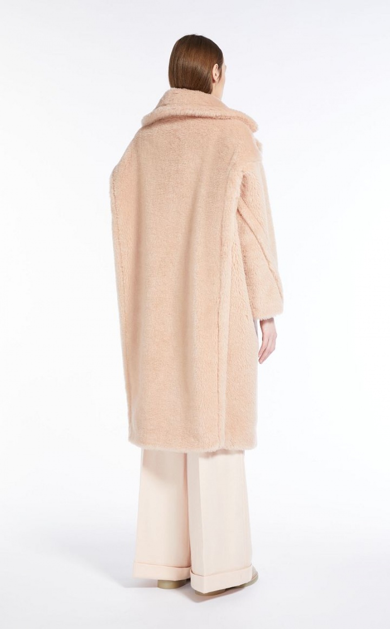 Designed in 2013, the Teddy Bear Coat was inspired by an archival garment from the ’80s and immediately became an it-coat. Stars and influencers loved its perfect alchemic blend of glamour and playfulness. Its special alpaca wool texture on a silk base is created using sophisticated technology developed by the creative team with an Italian supplier, capable of producing a unique faux fur. The coat's abundant volume is a celebration of the opulent extravagance of this fabric.