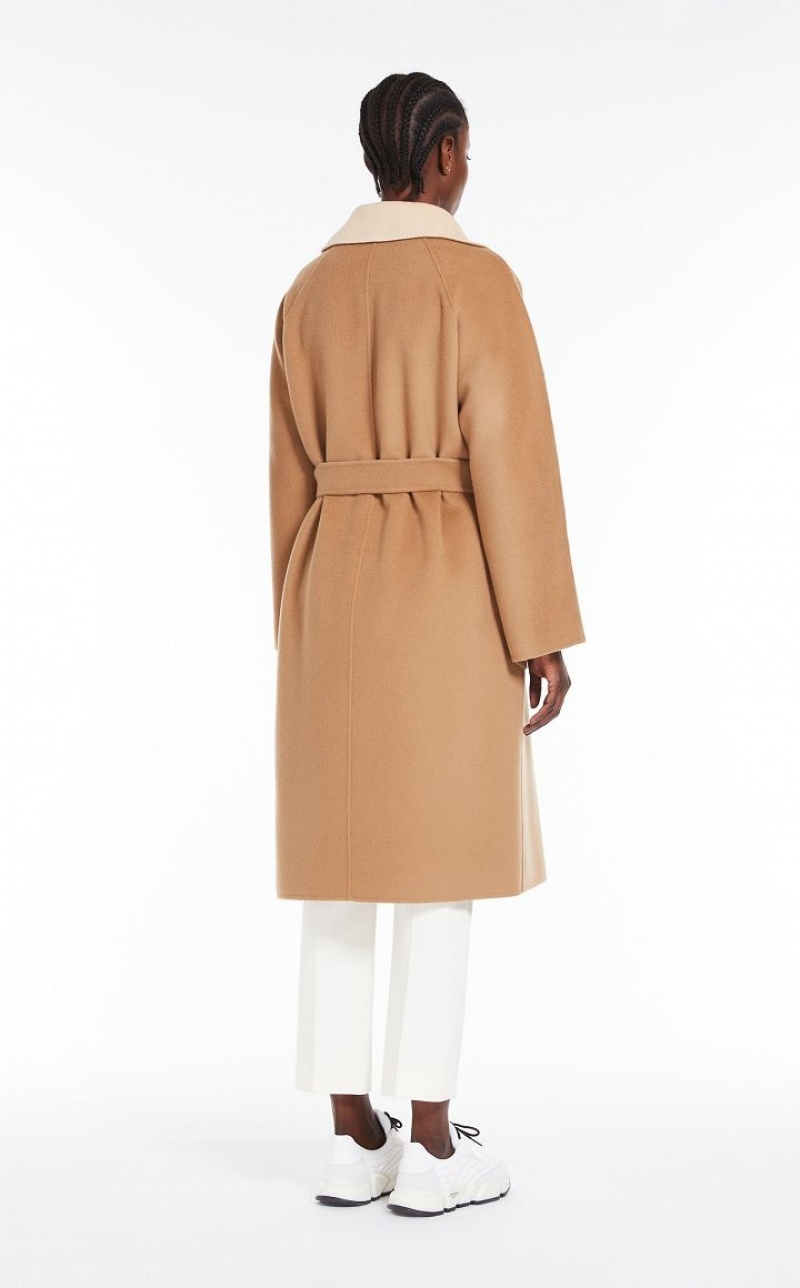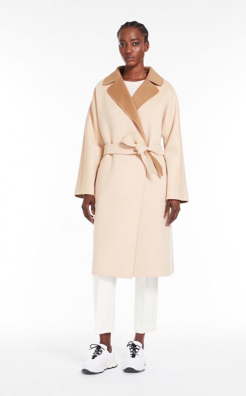 Short wrap coat in a luxe hand-sewn pure wool reversible fabric. Enveloping silhouette, with lapel collar, long sleeves and patch pockets. The silhouette can be accentuated with the matching belt.