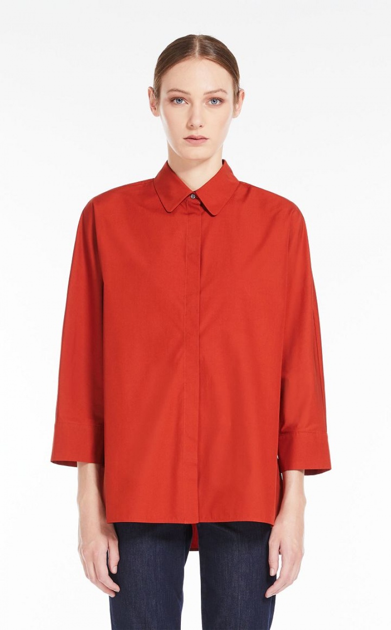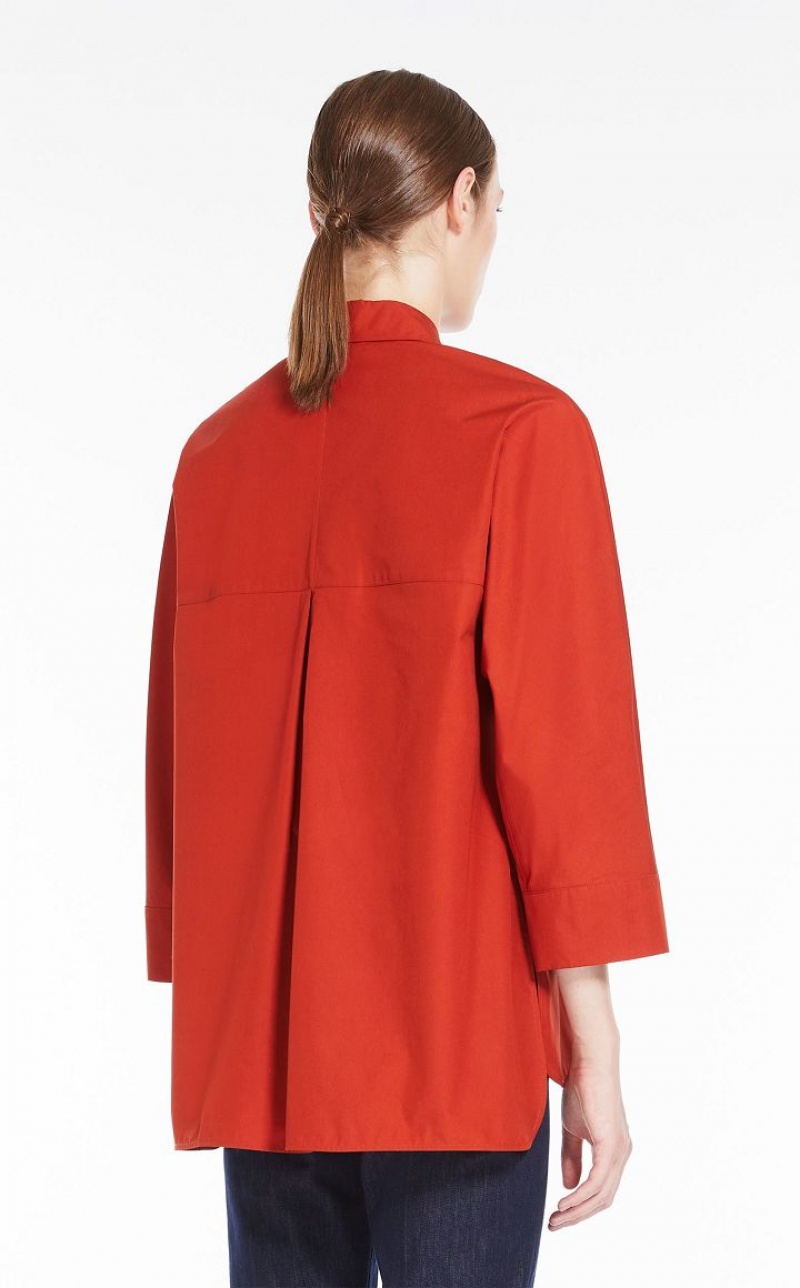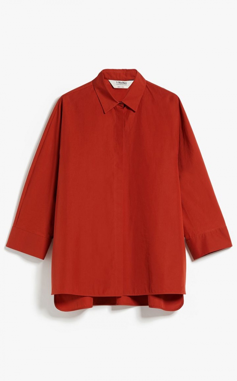 Shirt in fine washed pure cotton poplin fabric featuring a pointed collar, long kimono sleeves and a small inverted pleat at the back. Length: 73 cm.