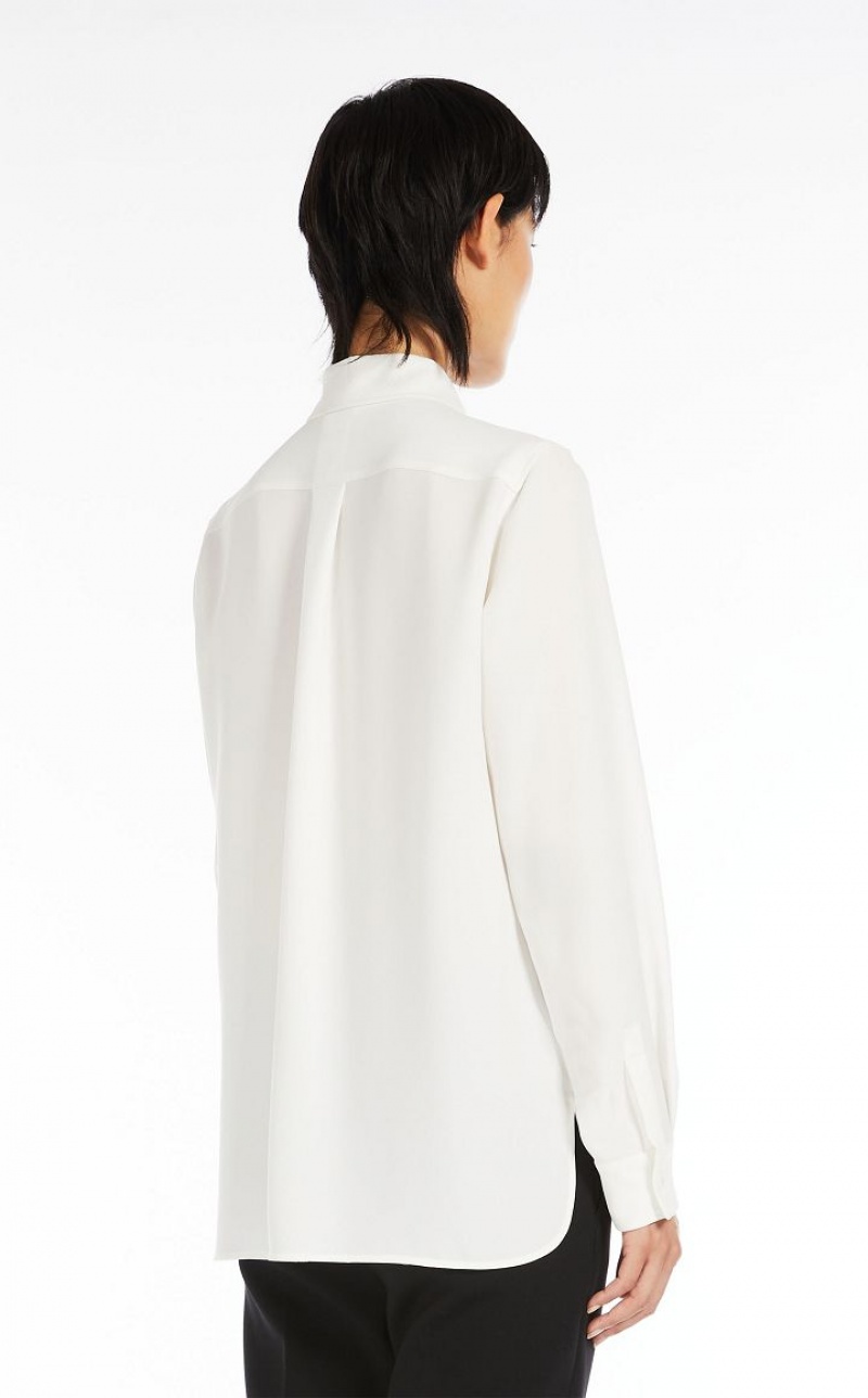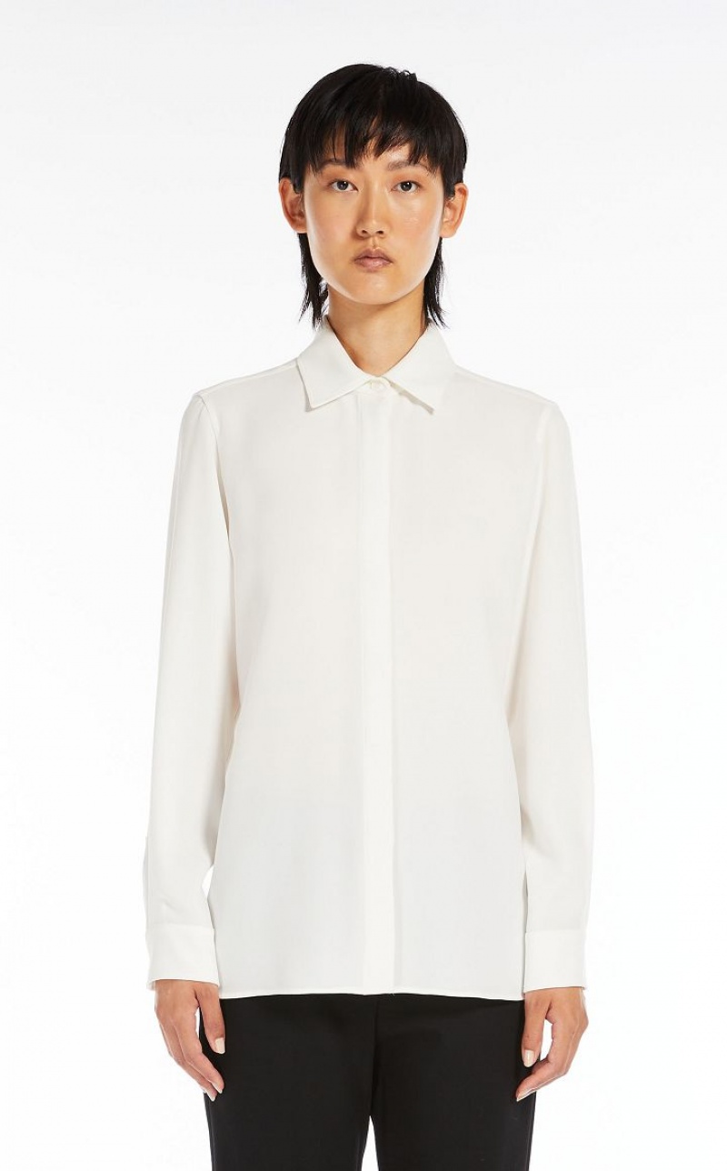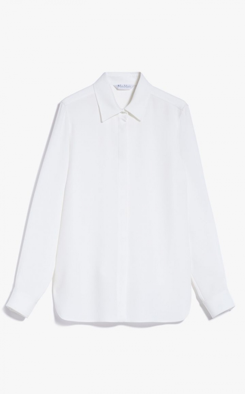Shirt with an oversized volume made of exquisite, playful cady. Straight, unlined style with classic pointed collar and long set-in sleeves with cuffs. Concealed button fastening at the front. Length: 72 cm.