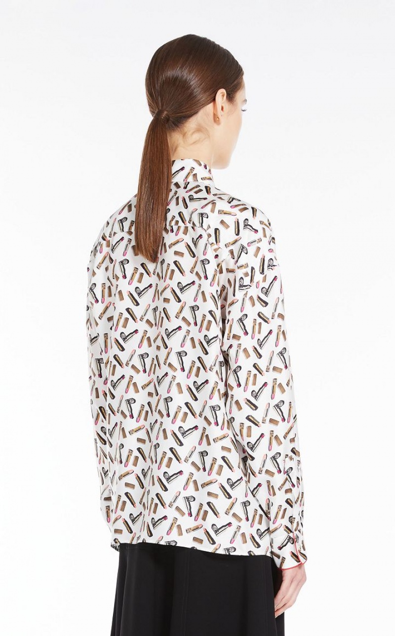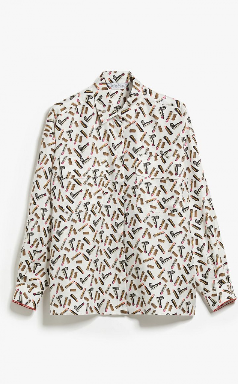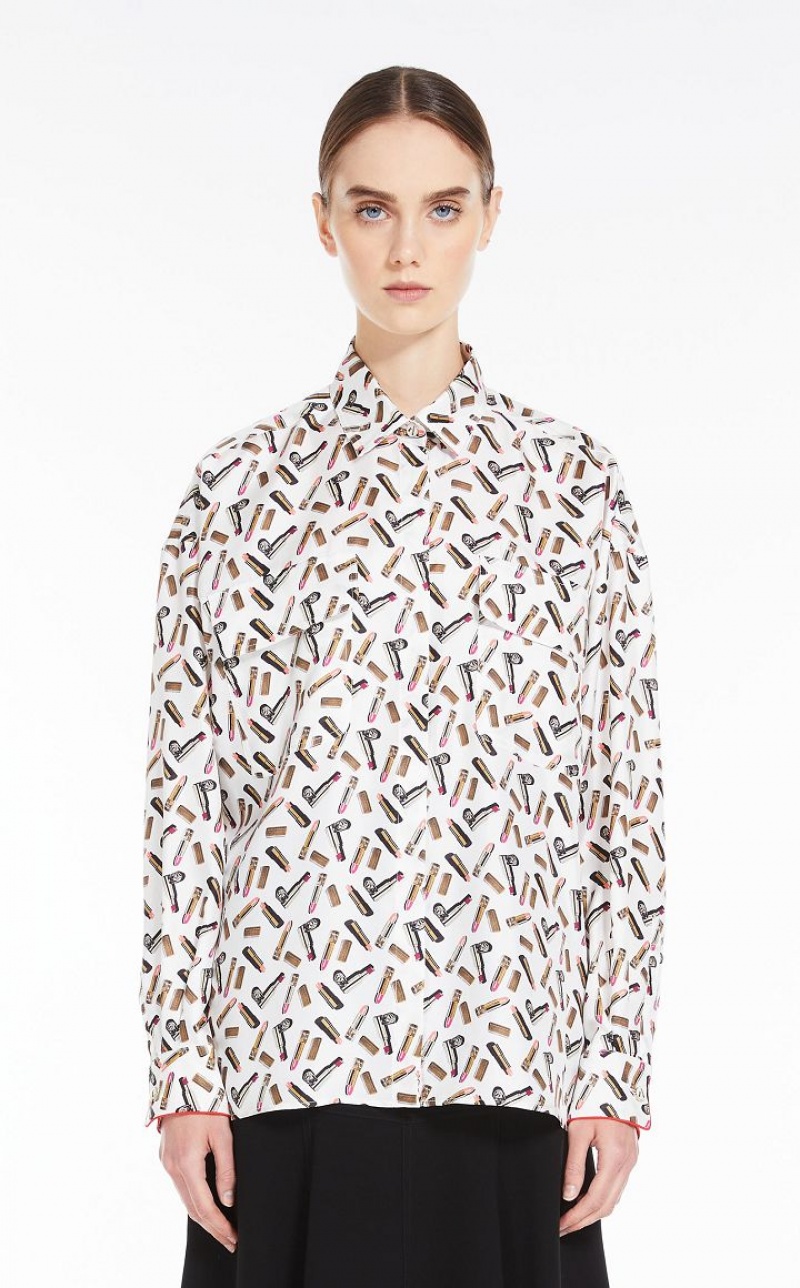 Long-sleeved shirt with a masculine cut, made of an exquisite printed pure silk twill. Slightly oversized style, finished with piping on the cuff and customised rounded buttons. Covered button fastening. Length: 65 cm.
