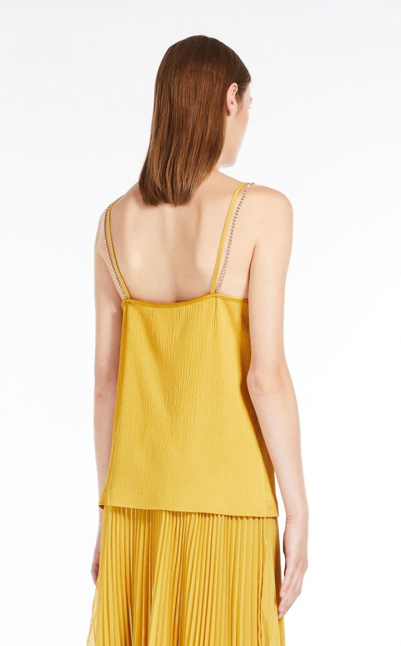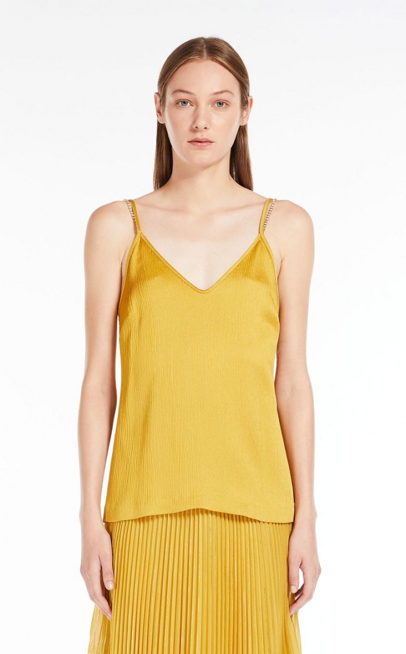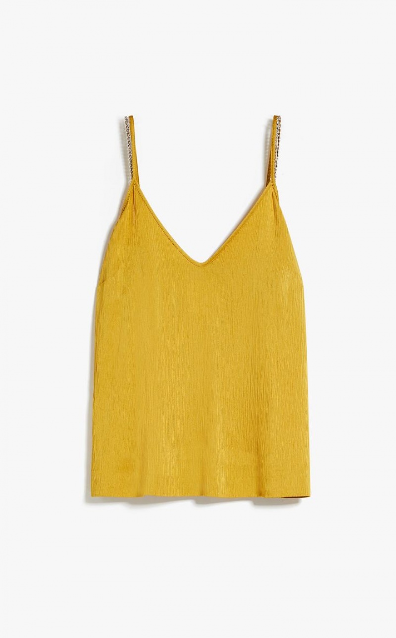 Fluid-fit sleeveless top in elegant viscose-blend crepon fabric featuring rhinestone-embroidered shoulder straps. Length: 62 cm.