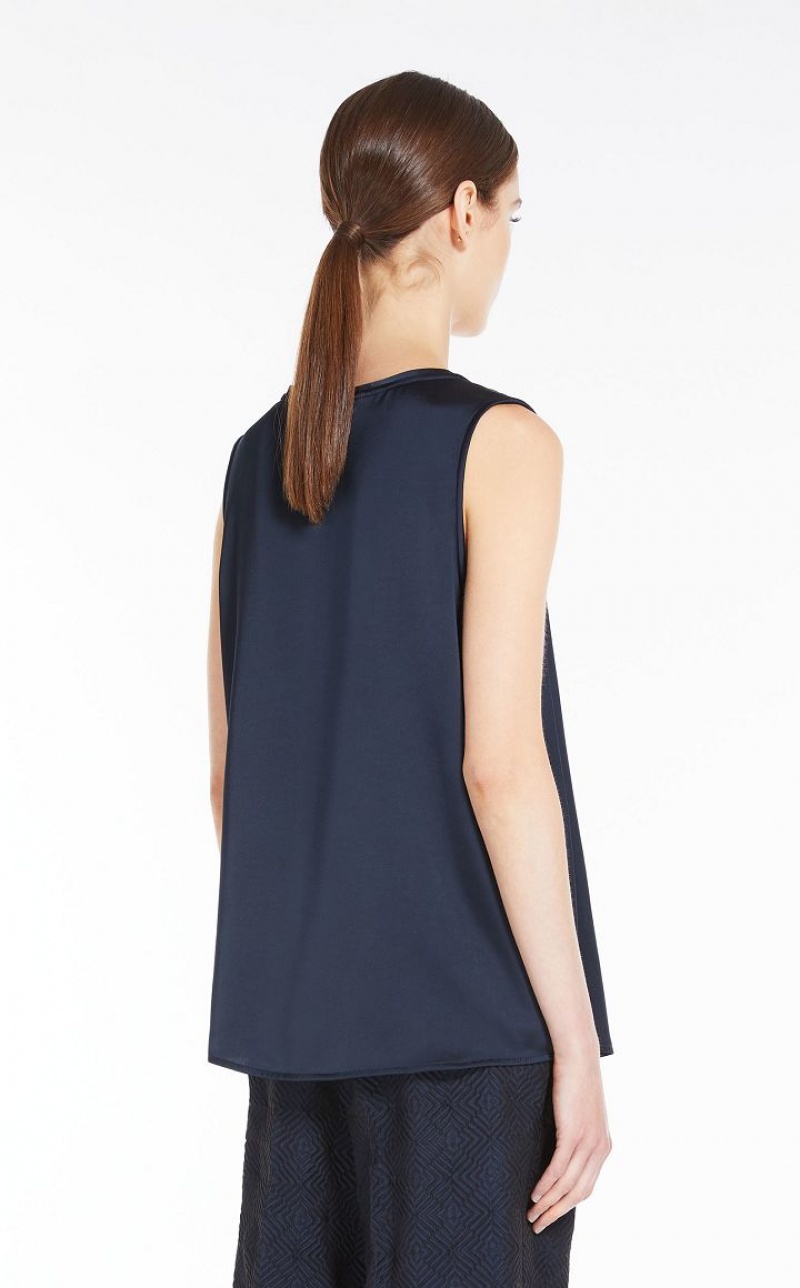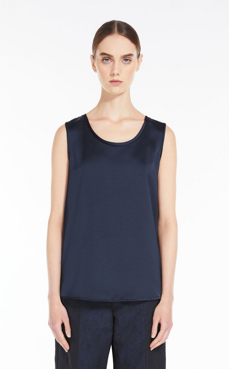 Sleeveless top in viscose-blend satin fabric featuring a fluid, feminine silhouette. Length: 65 cm.