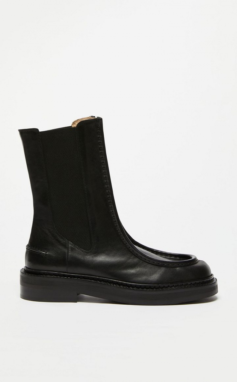 Chelsea boot made of supple, vegetable tanned calfskin. Rounded at the toe, with a stitched shoe apron and contrasting elasticated insert on the sides. Ultra-light 2 cm-high rubber sole with leather welt.