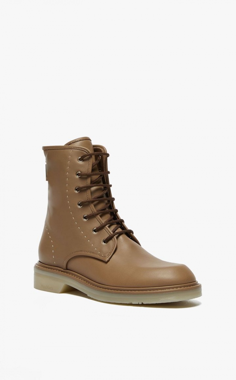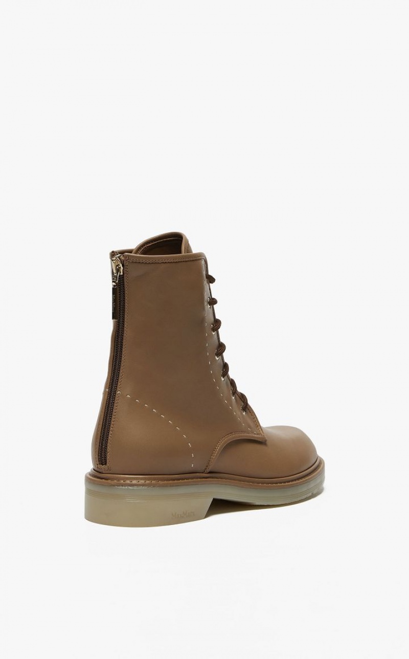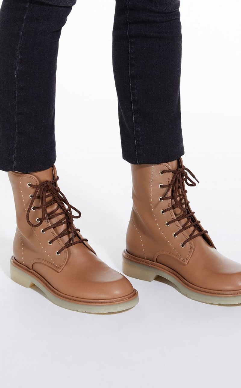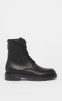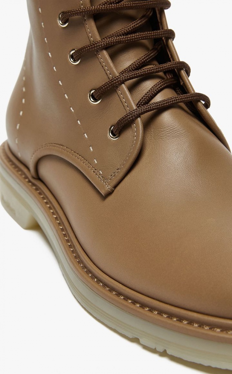 High lace-up boots made of soft smooth natural calfskin, embellished with iconic tailored binding. The leg is embellished with the M Monogram logo on the side. Leather lining, heel with side logo and knurled rubber sole with non-slip monogram detail. Back zip fastening.