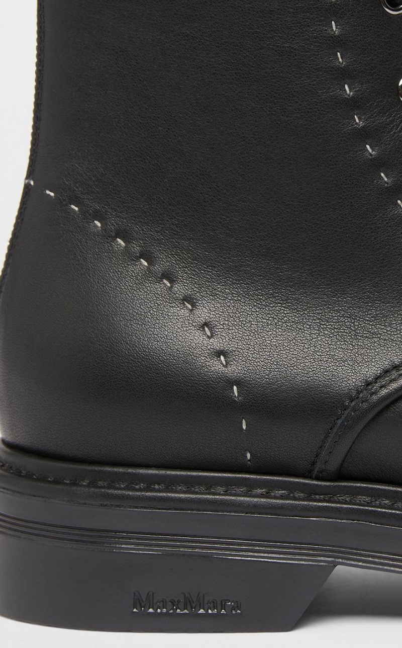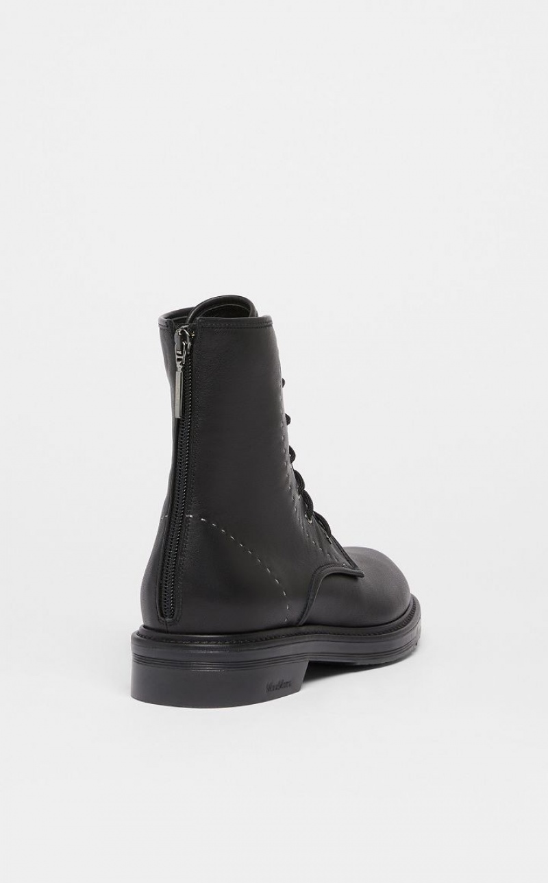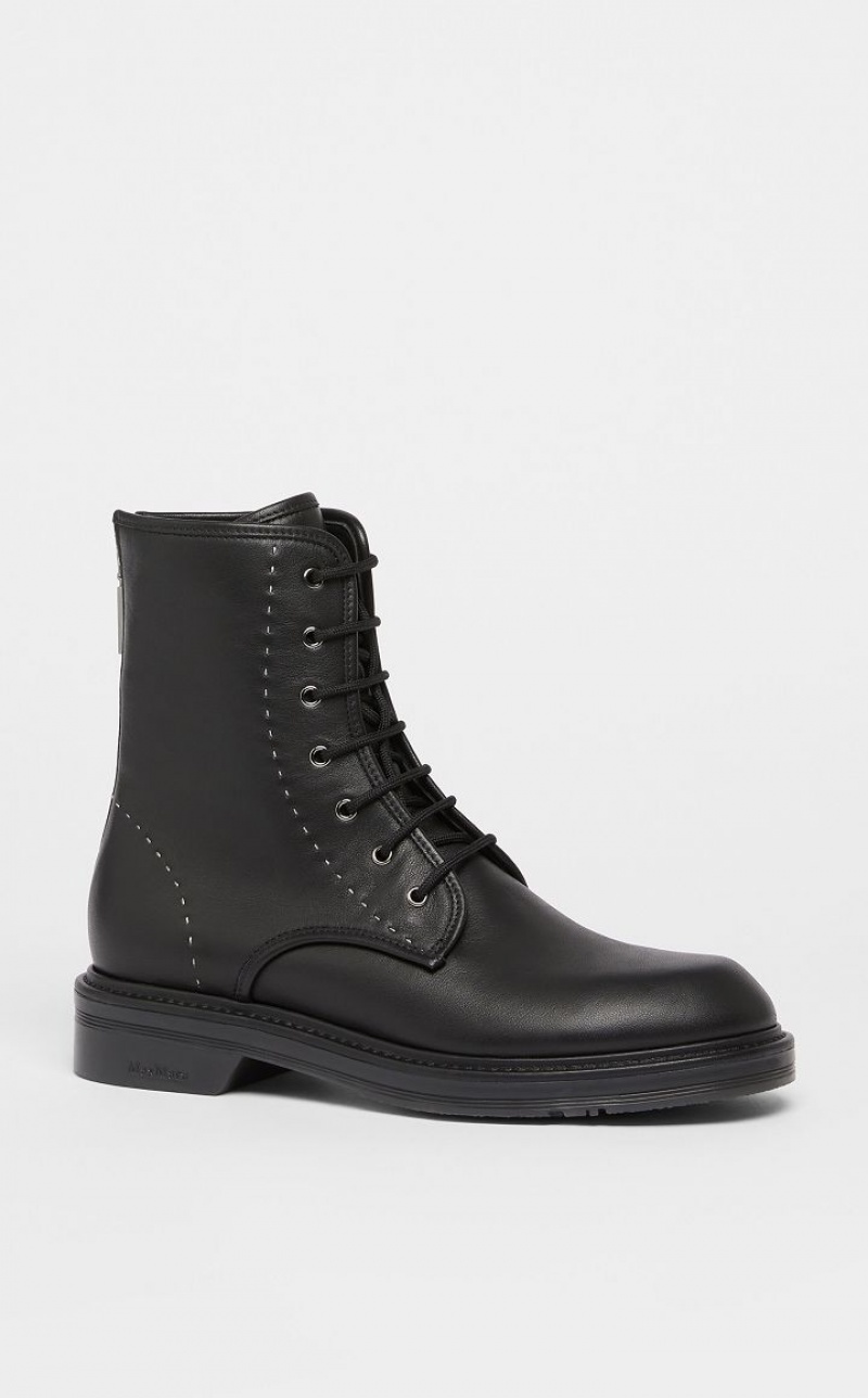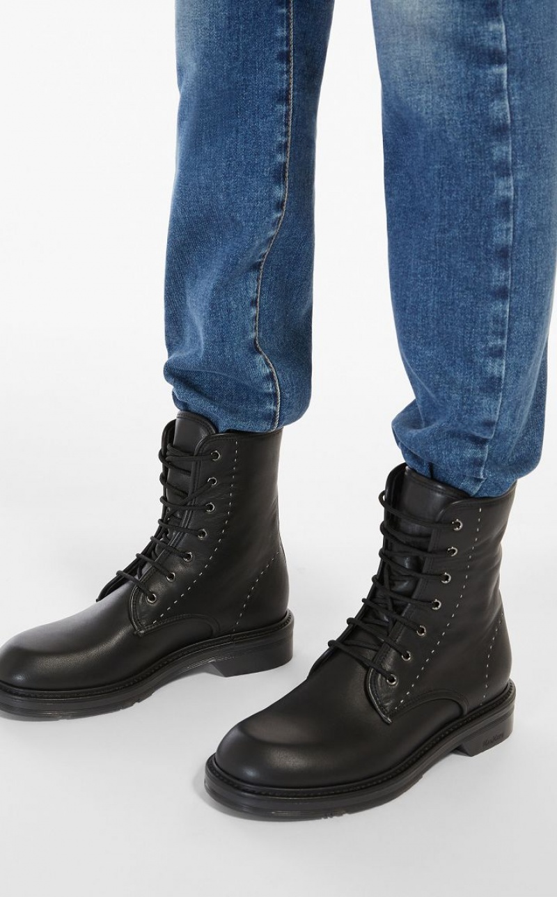 High lace-up boots made of soft smooth natural calfskin, embellished with iconic tailored binding. The leg is embellished with the M Monogram logo on the side. Leather lining, heel with side logo and knurled rubber sole with non-slip monogram detail. Back zip fastening.