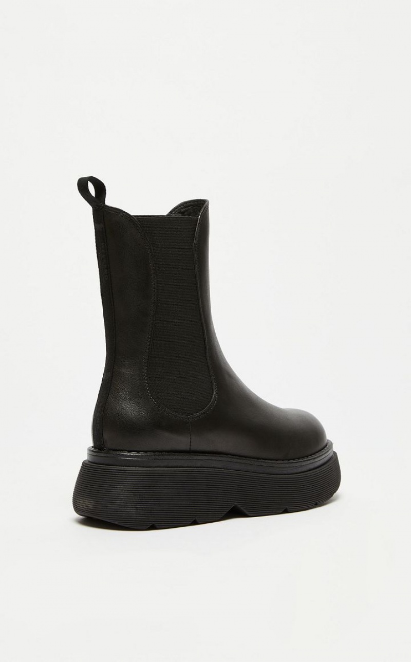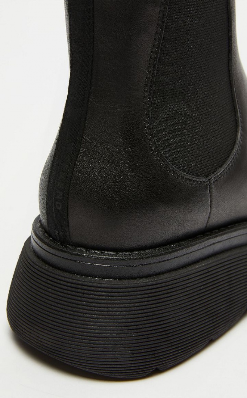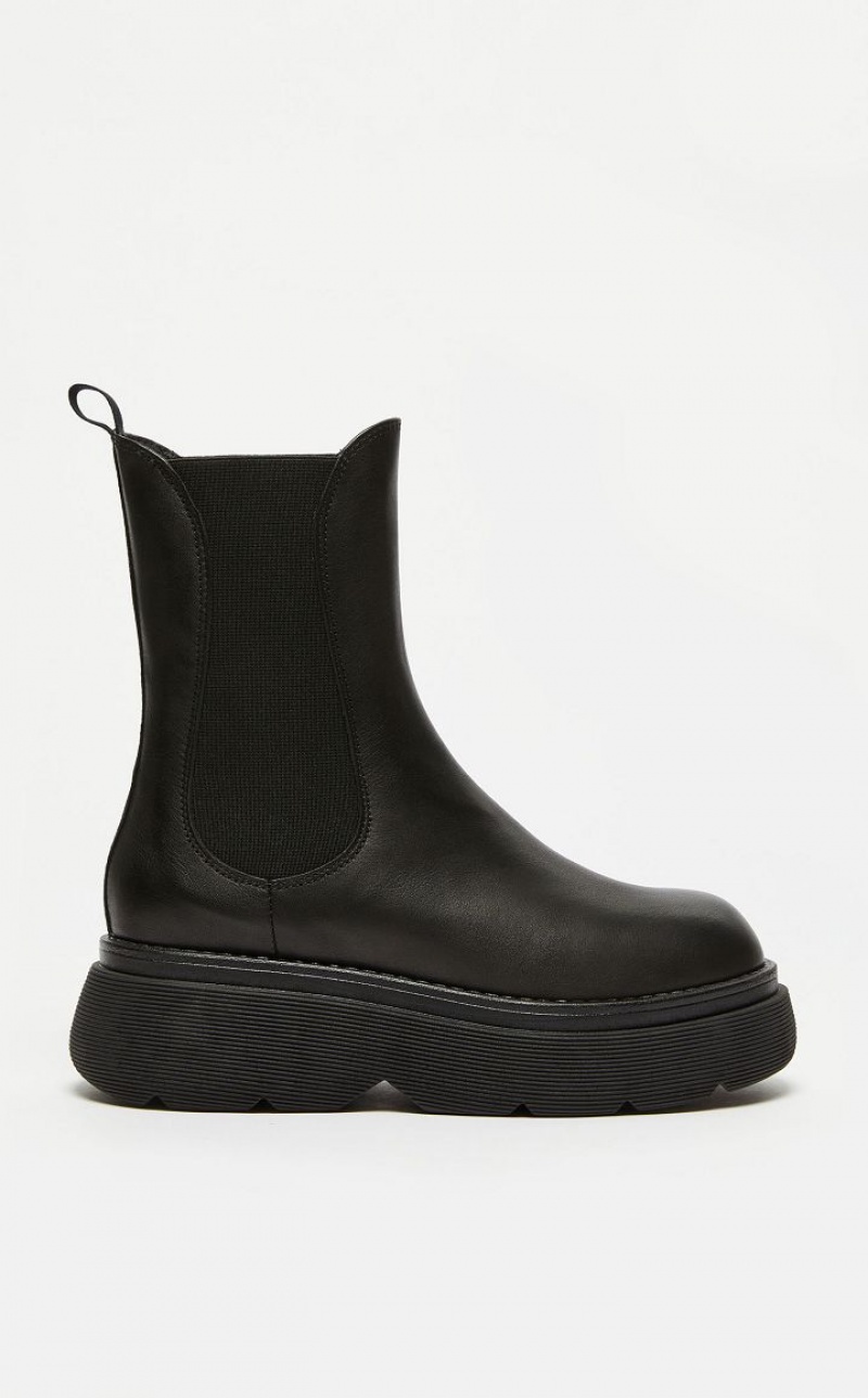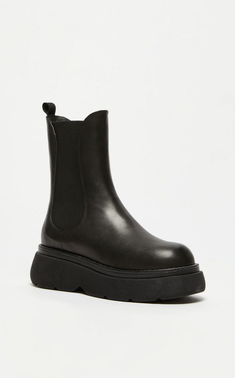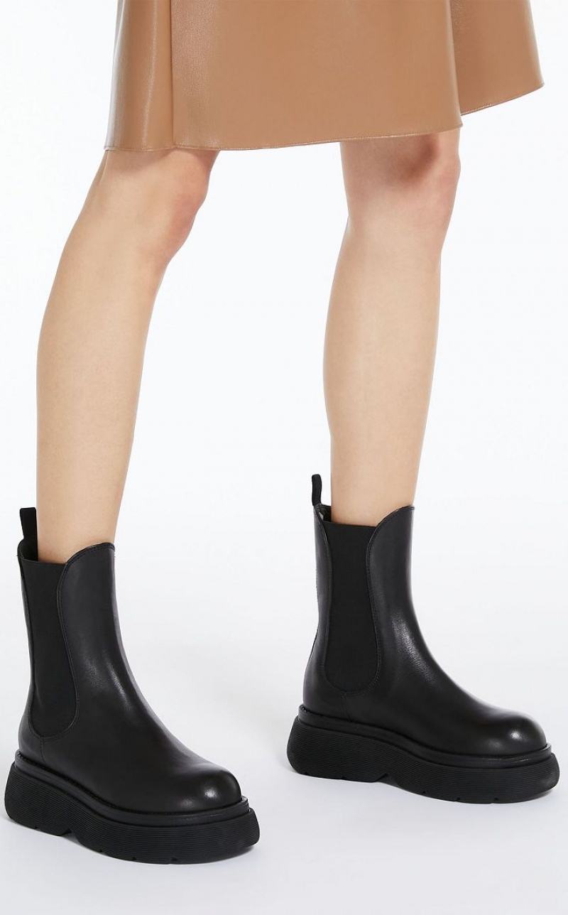 Chelsea model ankle boots in soft glossy effect smooth leather, with classic stretch inserts on the sides. Pull tab on the back so they can be put on quickly. Leather lining. High rubber sole with side graining and non slip outsole.