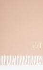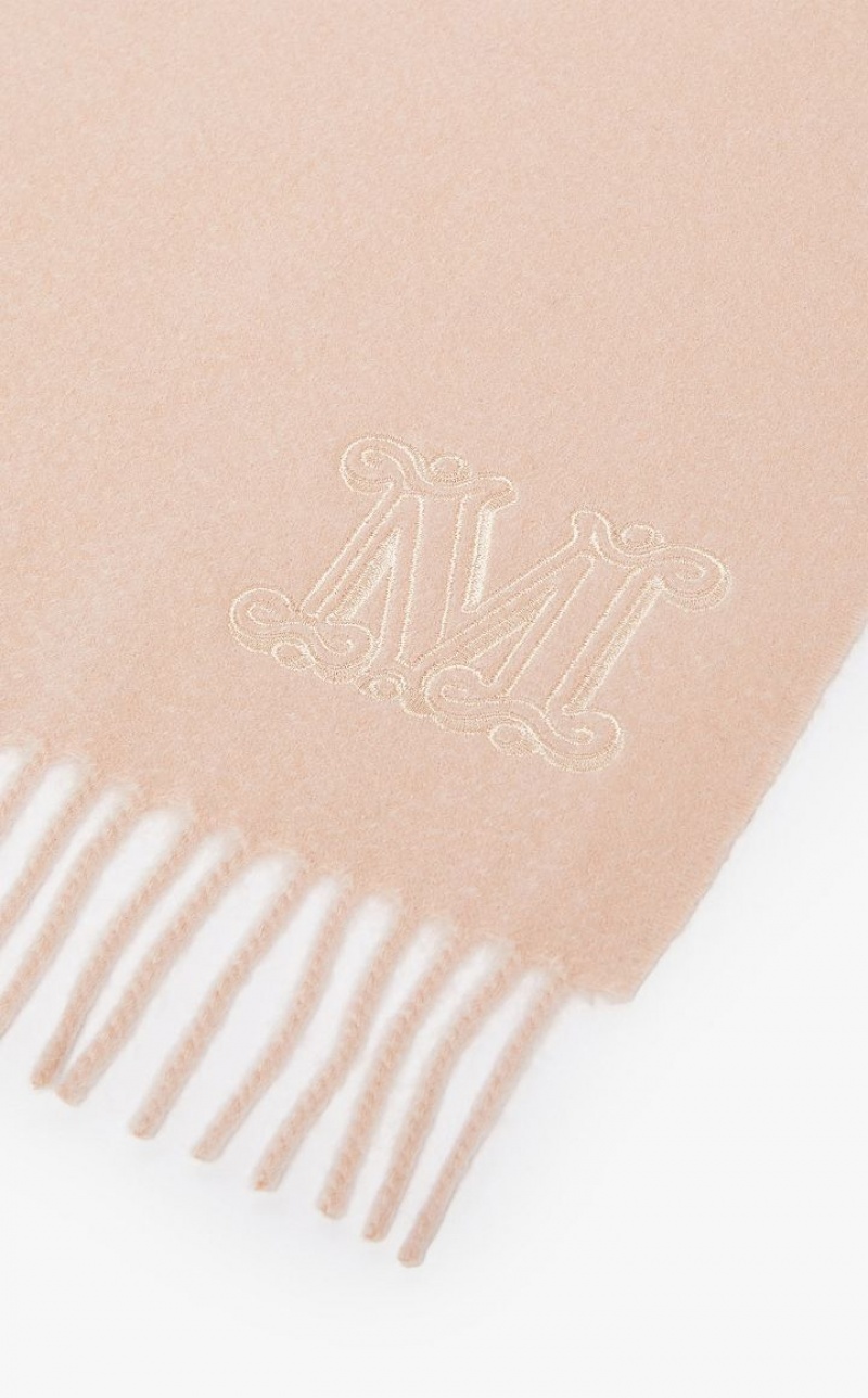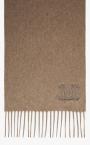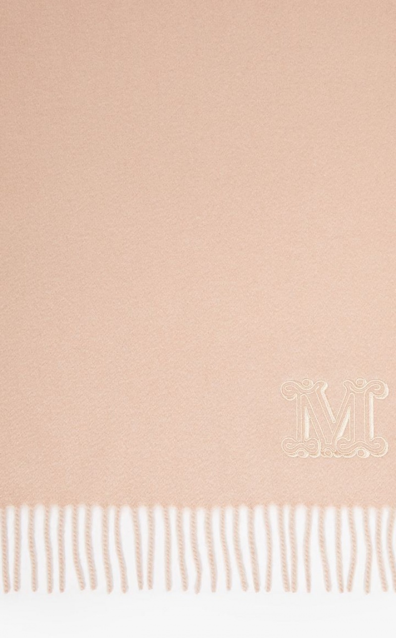 Stole made of exquisite pure sable cashmere yarn. The minimalist design is embellished by the elegant M Monogram detail embroidered at the hem. Long fringes on the short sides. Measurements: 206 x 28 cm.