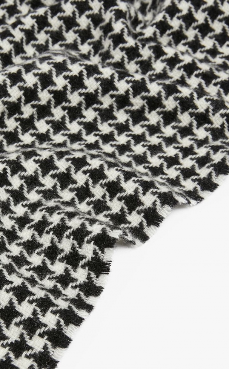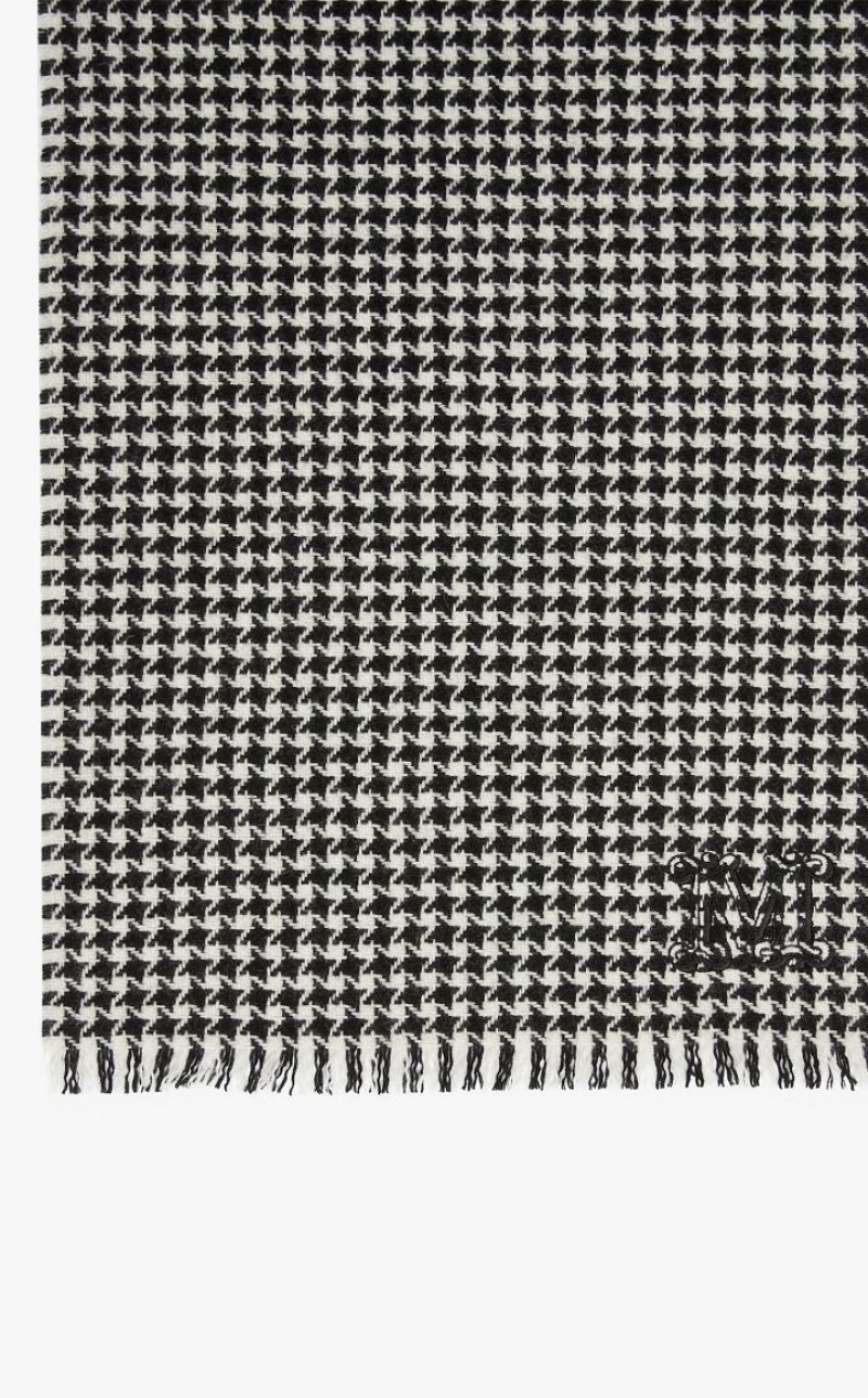 Scarf in exquisite pure cashmere yarn, with a yarn-dyed houndstooth design. Finished with an M Monogram logo embroidered on the hem and small fringed ends. Measurements: 180 x 35 cm.