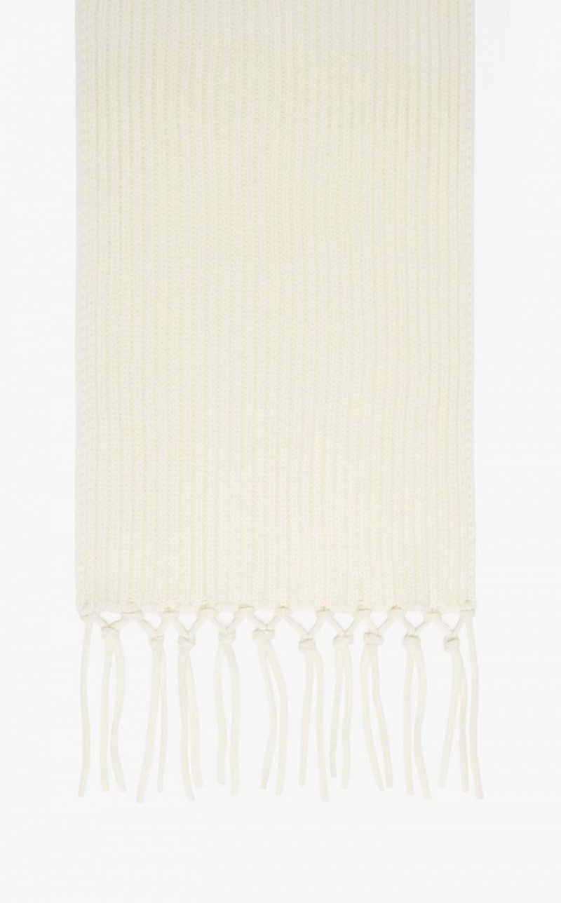 Scarf in pure wool yarn with a soft shape. The accessory features detailing on the ends. Measures: 200 x 32 cm.