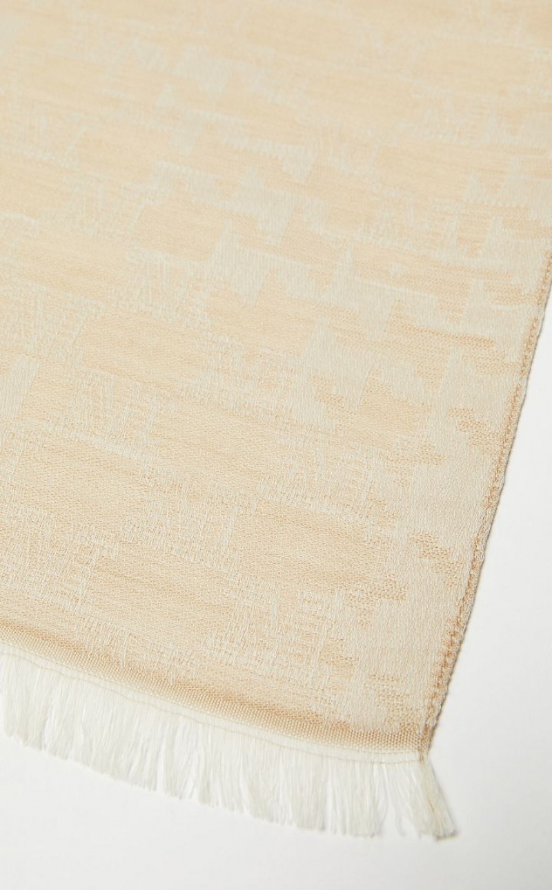 Wool and silk yarn stole with an all-over jacquard houndstooth pattern. Measurements: 184 cm x 73 cm.