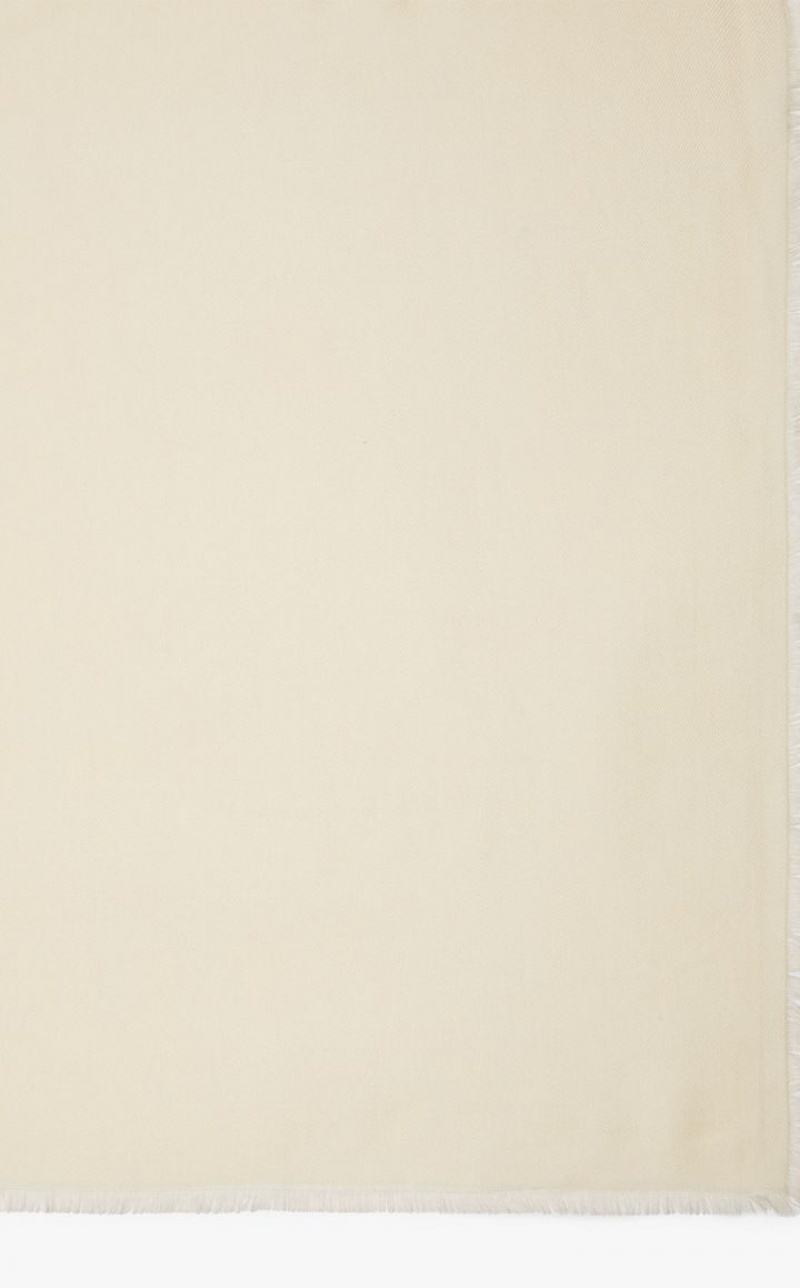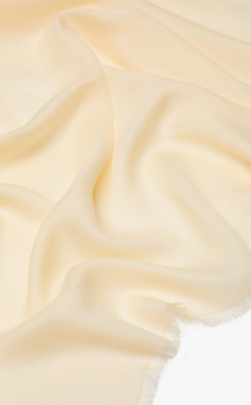 Stole in plain colour modal yarn. Finished with fringe motif at the ends and small butterfly logo on one side. Size 180 x 70 cm.