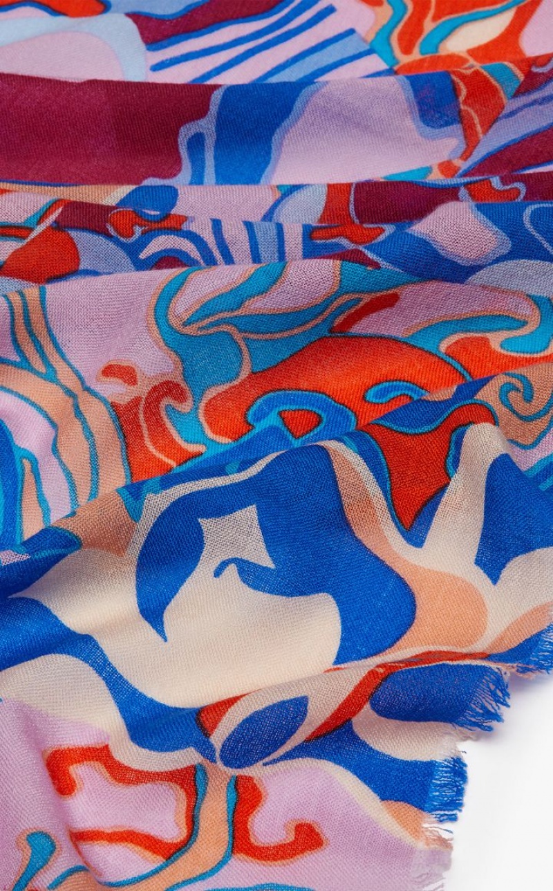 Shawl in pure wool yarn printed with collection patterns. Size 128 x 128 cm.