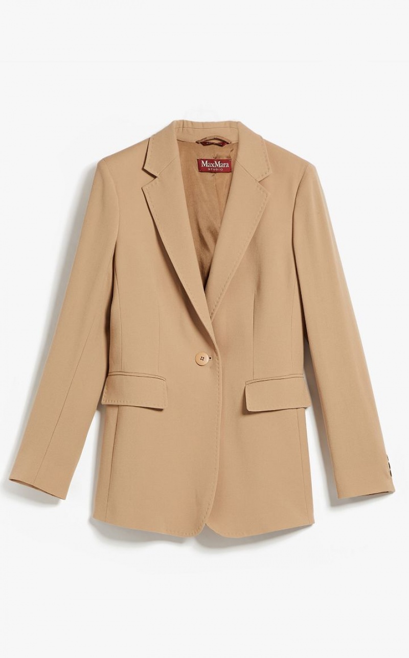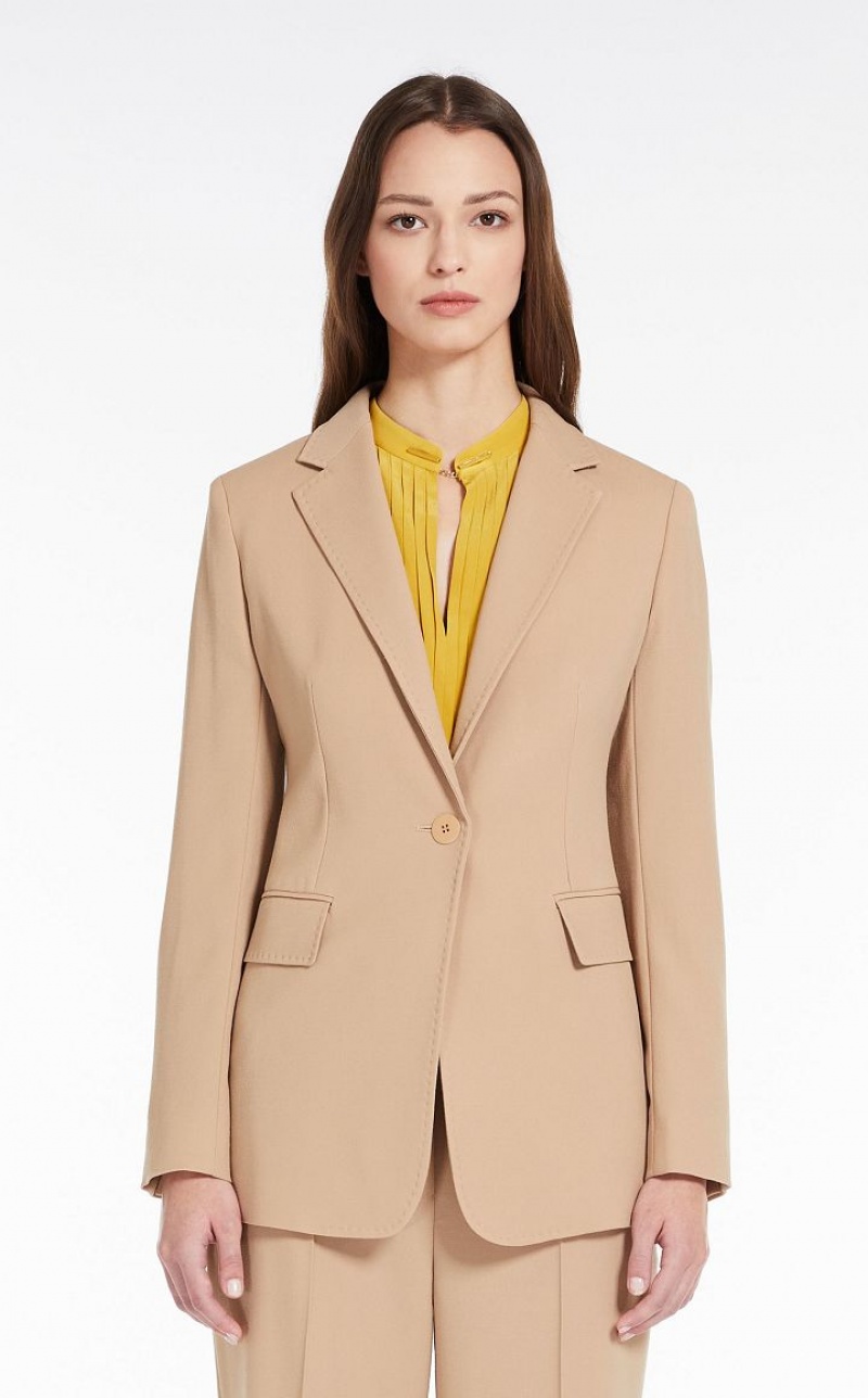 Slim-fit single-breasted jacket in fine pure wool fabric. The feminine-fit model boasts long set-in sleeves and flap-adorned pockets. It also features tailored stitching along the fastening and lapel collar. Lined model. One-button fastening. Length: 70 cm.