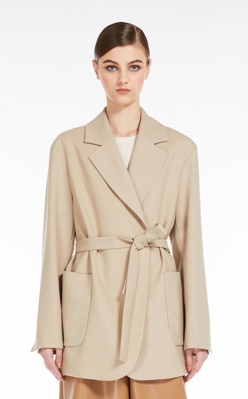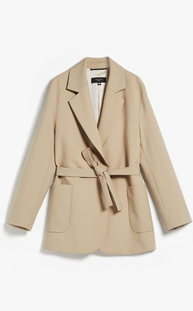 Oversized wrap jacket in a luxe pure wool fabric. Lined style, with lapel collar, long sleeves with dropped shoulders and slits at the ends, and patch pockets on the front. The enveloping silhouette with vent at the back is finished with a matching belt to emphasise the waist.