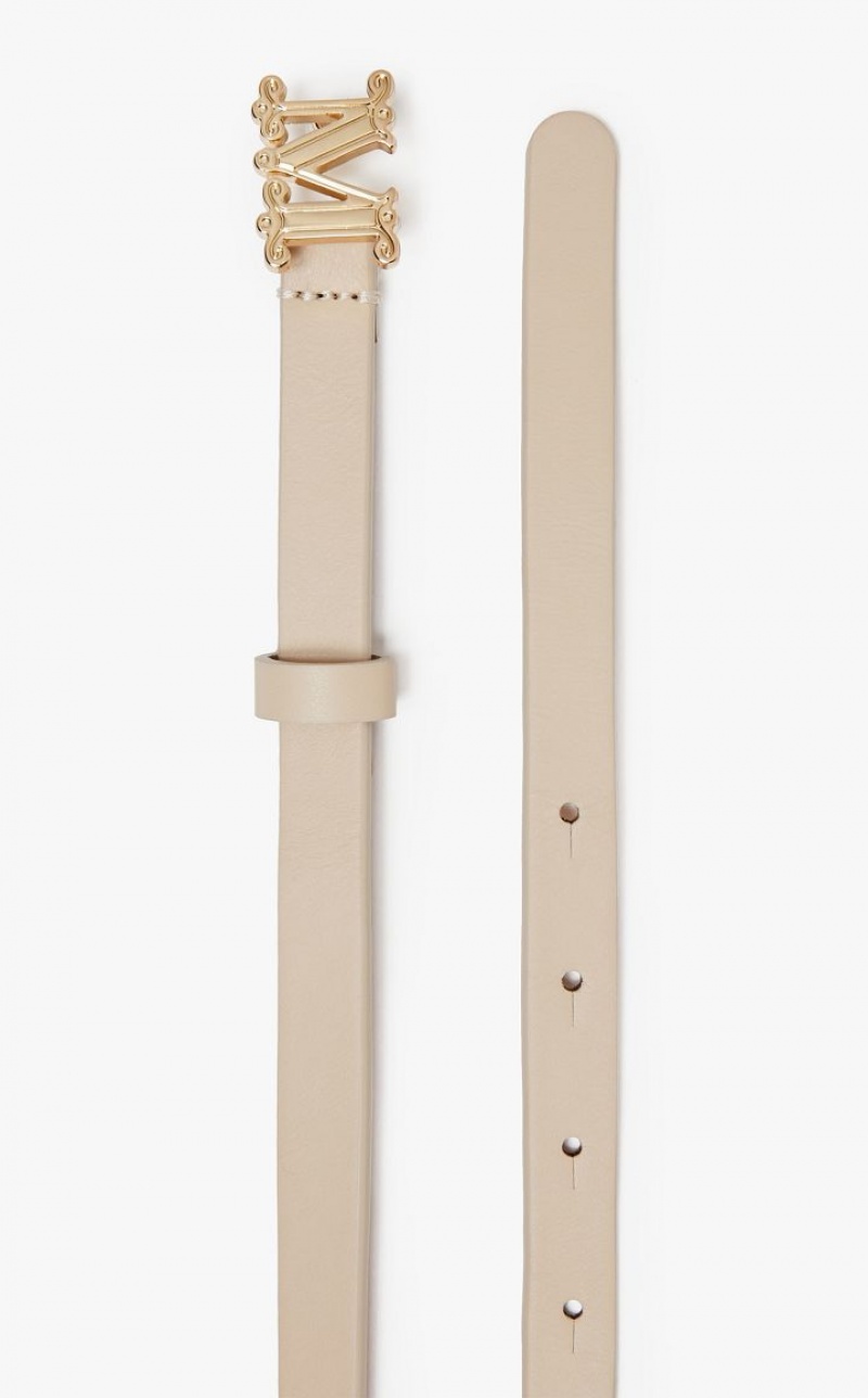 Thin belt made of soft calfskin. Cufflink fastening with three-dimensional M Monogram metal buckle. It is 1.5 cm wide which enhances its femininity.