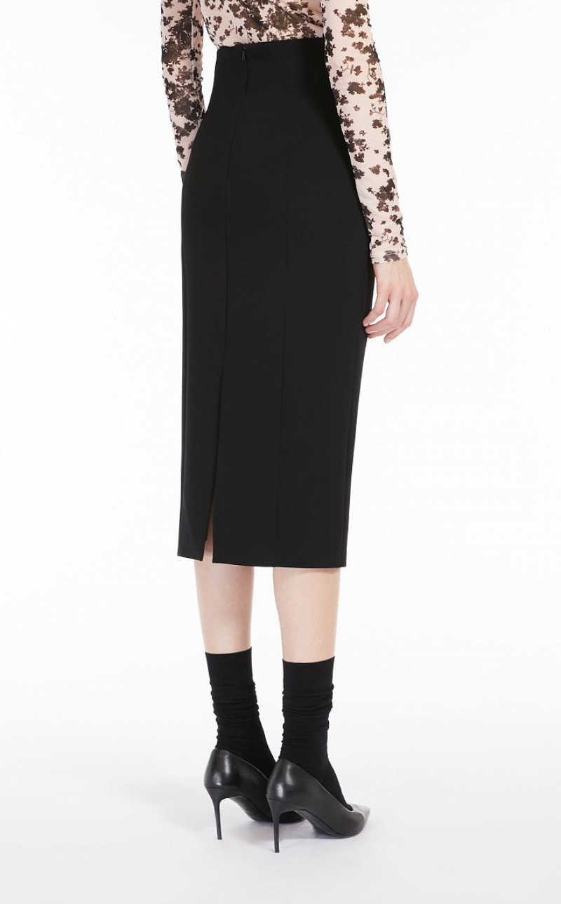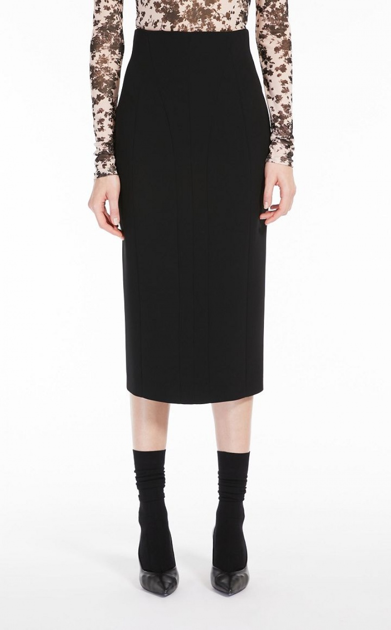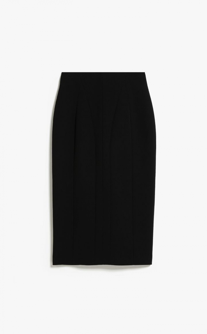 High-waisted bodycon skirt in cady fabric. The fitted design boasts silhouette-defining vertical dart detail. Lined model. Length: 75 cm.