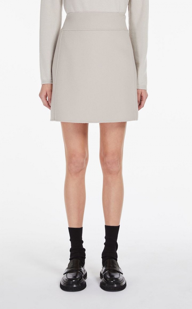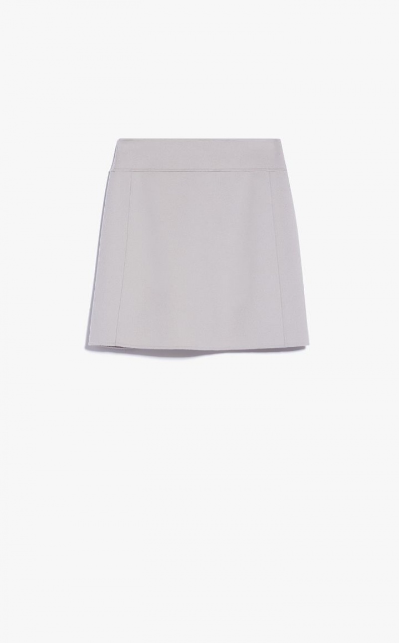 Short bodycon skirt in soft pure wool fabric featuring a mid-rise straight silhouette. The unlined model boasts a concealed zip fastening at the back. Length: 48 cm.