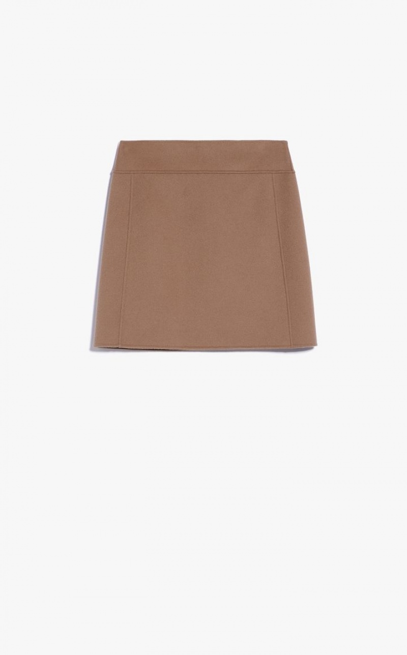 Short bodycon skirt in soft pure wool fabric featuring a mid-rise straight silhouette. The unlined model boasts a concealed zip fastening at the back. Length: 48 cm.