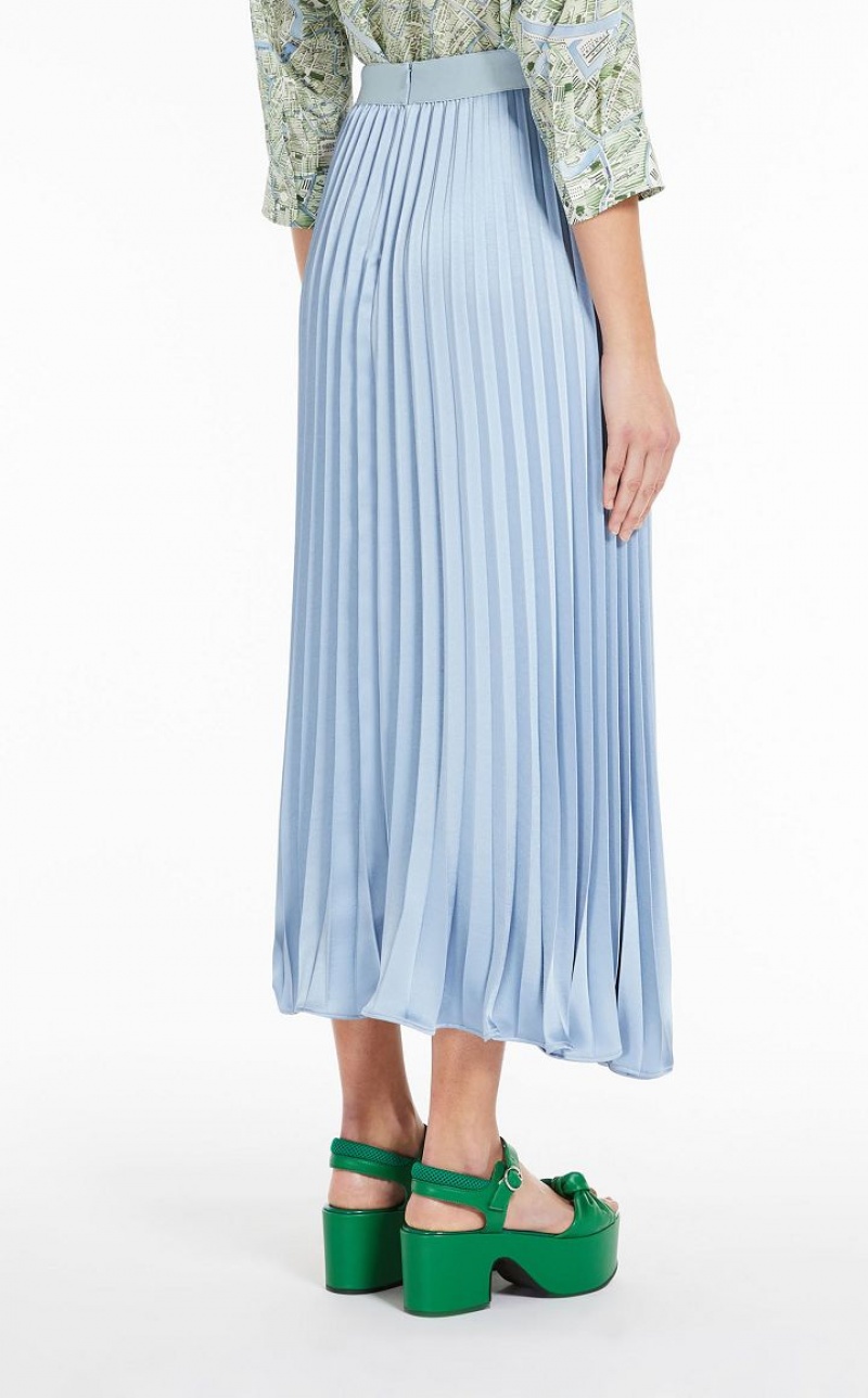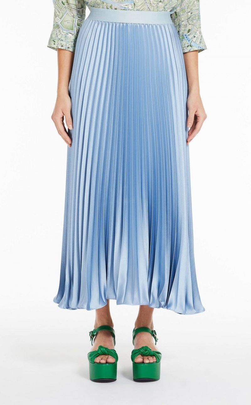 Long skirt with flowing silhouette in a luxe pleated satin. This style has a high, elasticated waist and a side zip fastening. Length: 94 cm.