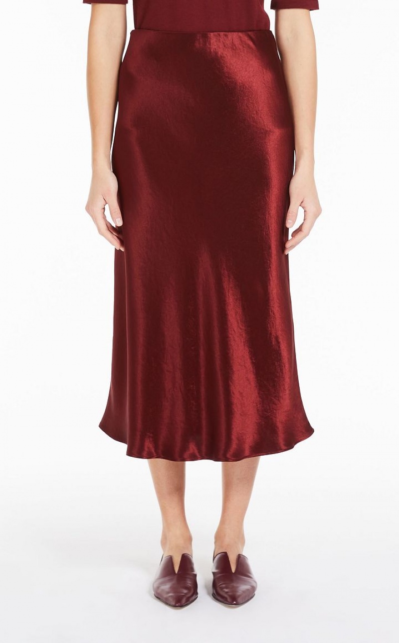 Flared satin skirt with an elasticated waist. Length: 85 cm