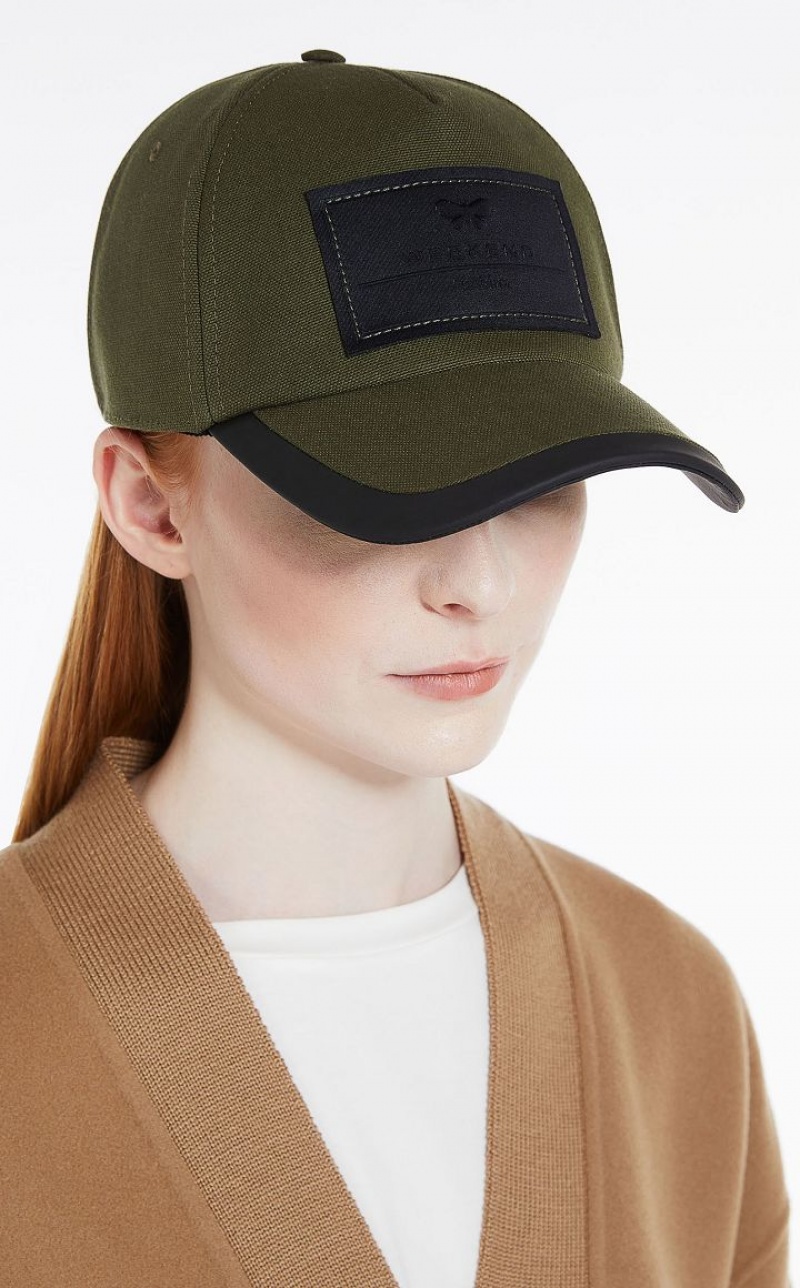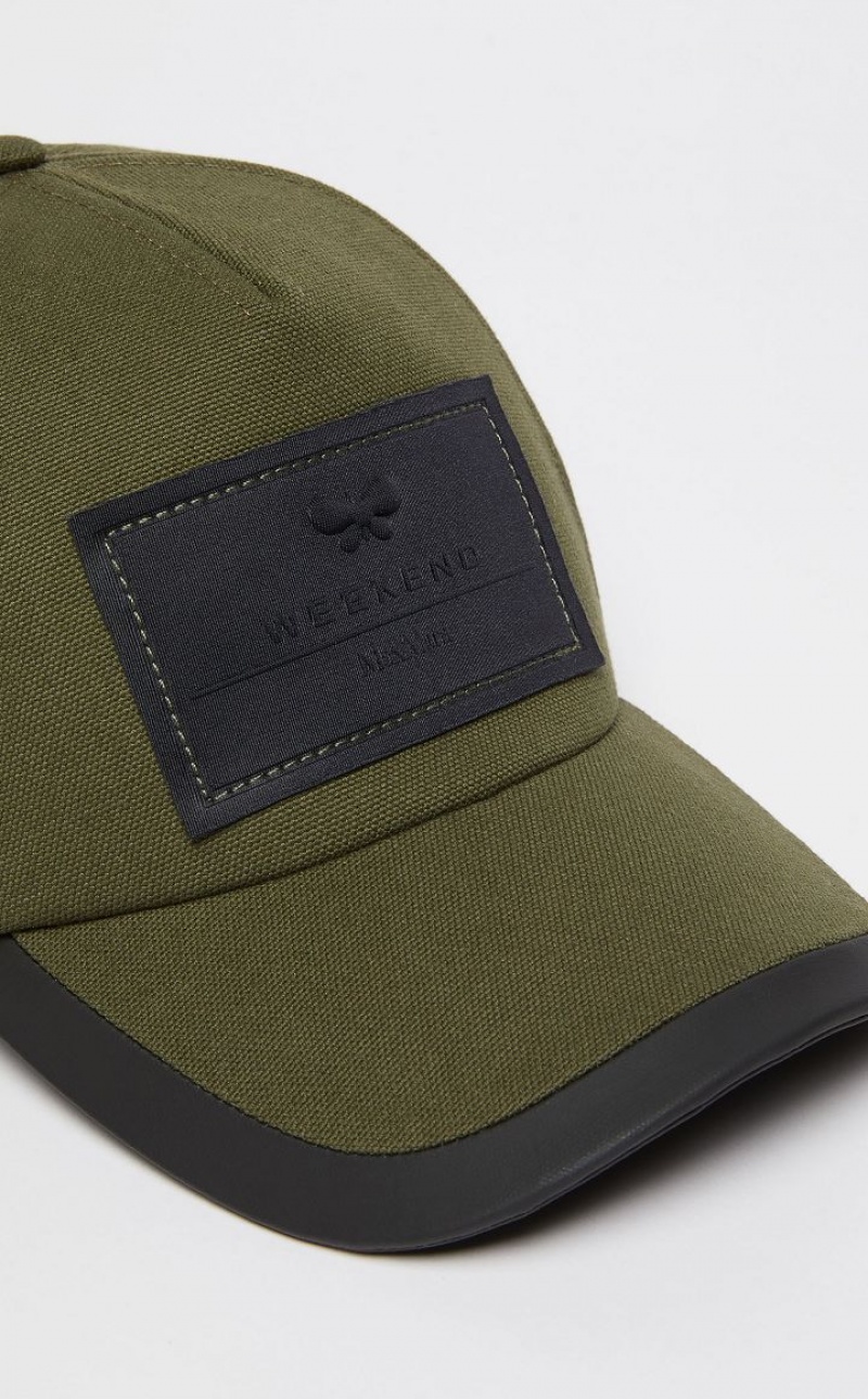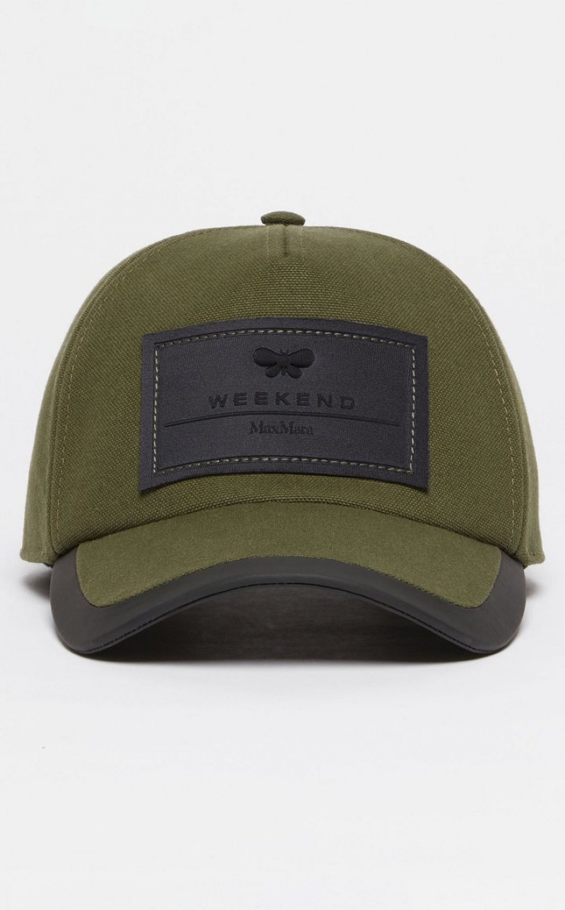 Pure cotton canvas baseball cap with curved visor and “Weekend Max Mara” label on the front.