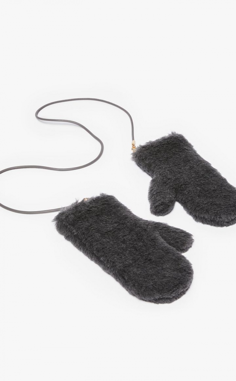 Mittens in iconic wool and alpaca Teddy fabric on a silk base, with a wool lining for excellent comfort and warmth. Complete with removable cord with small metal snap clip.