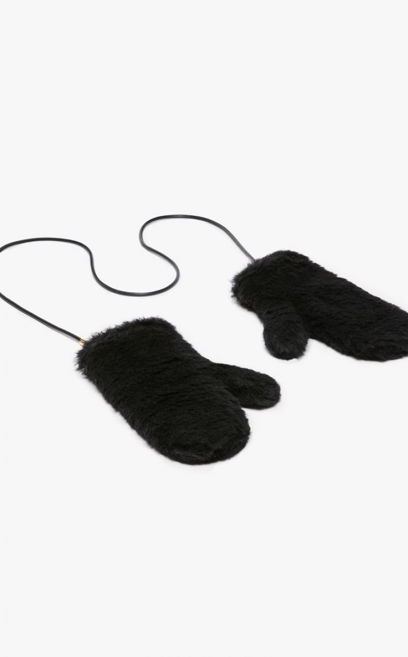 Mittens in iconic alpaca and wool Teddy fabric on a silk base, with a wool lining for excellent comfort and warmth. Complete with removable cord with small metal snap clip.