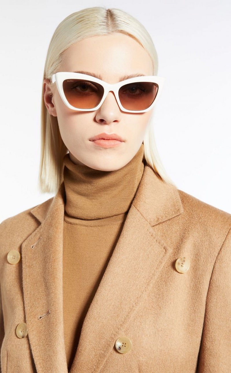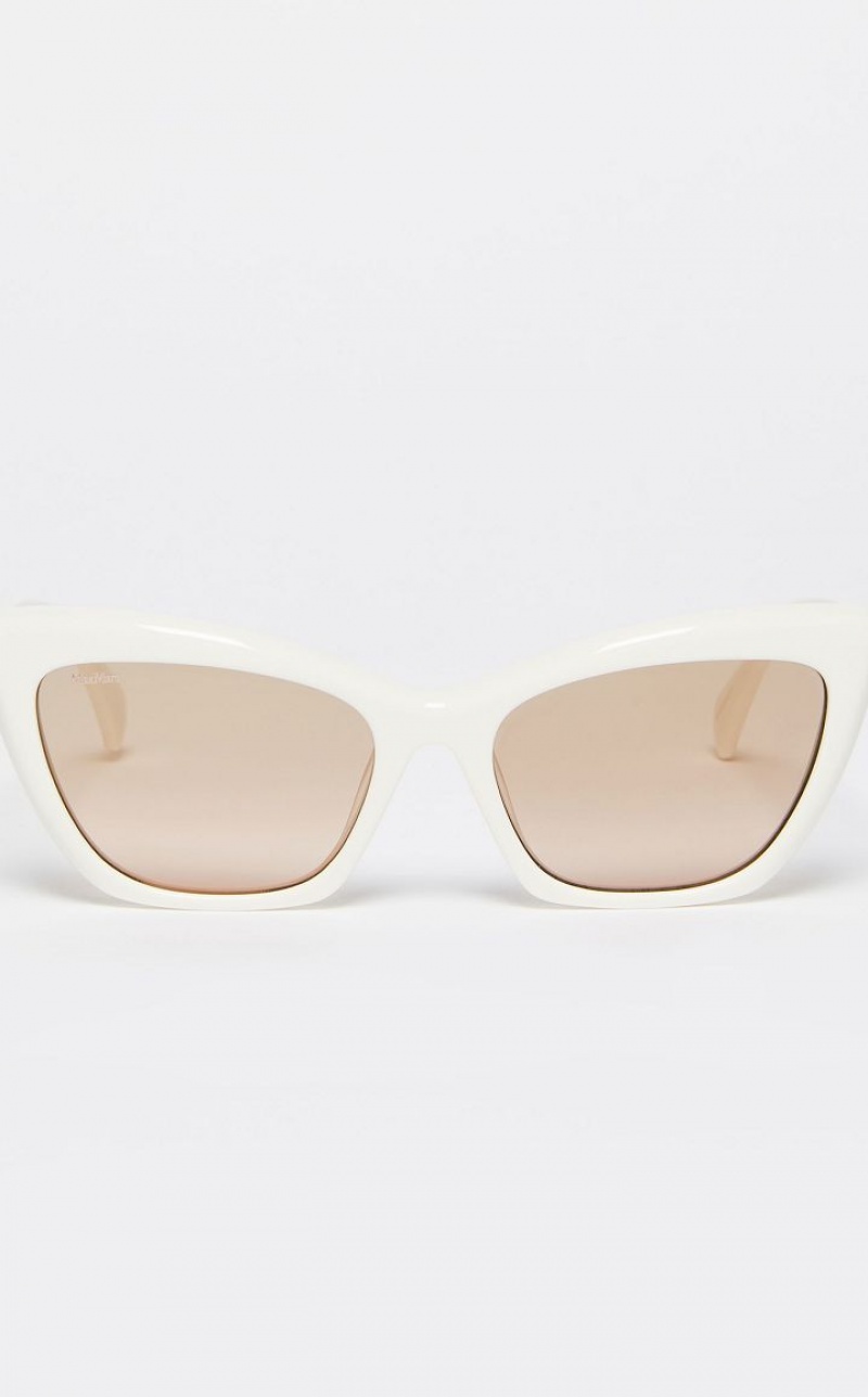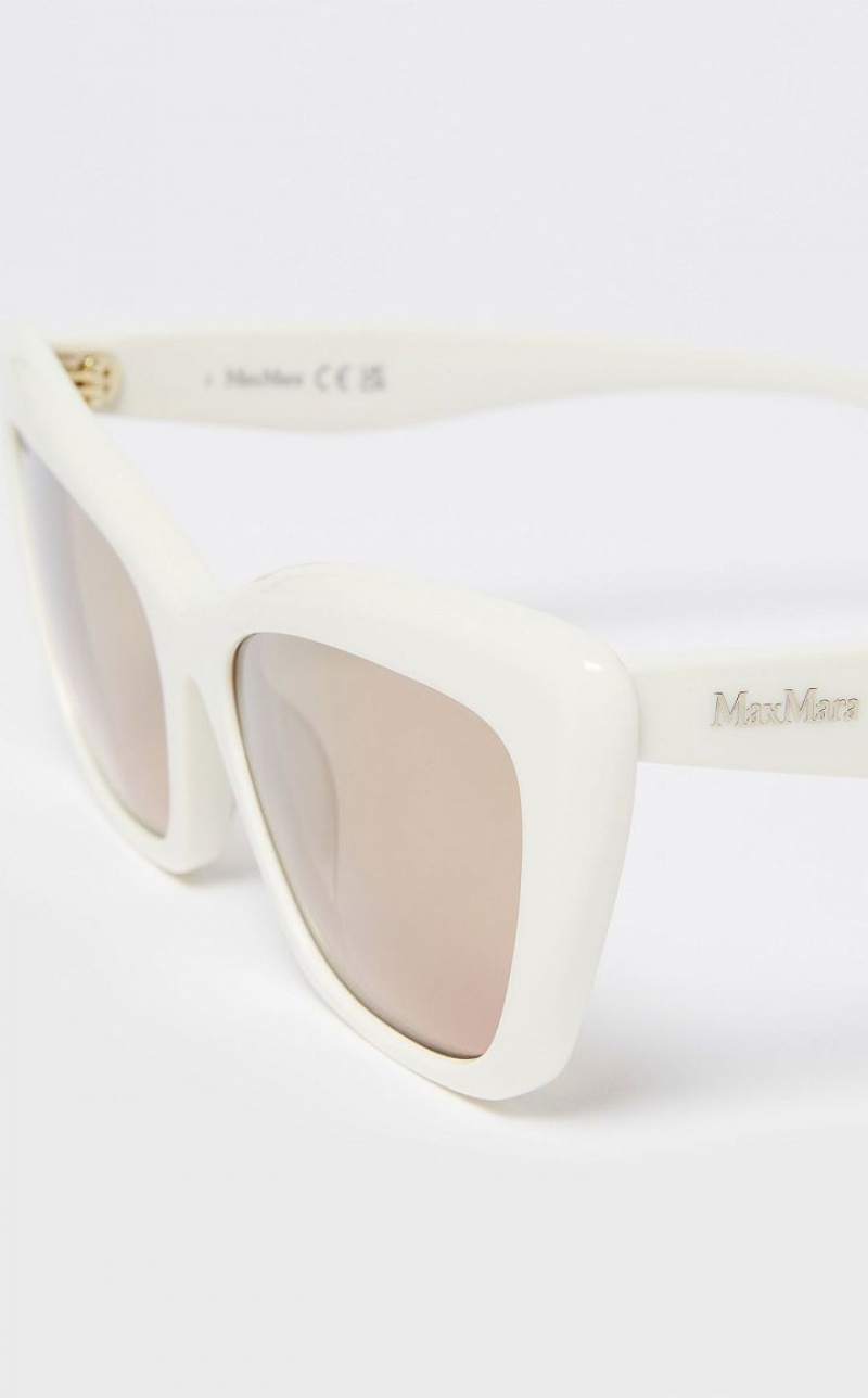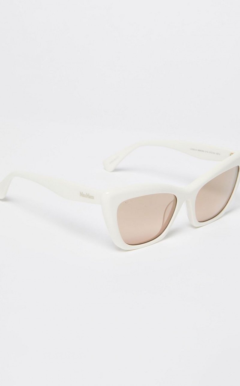 Modern femininity. This cat eye style pair has clean, defined lines and rims that lend character to the acetate frame, which itself is enhanced by angular temples bearing the classic Max Mara logo.Available in bold, modern colours.