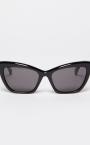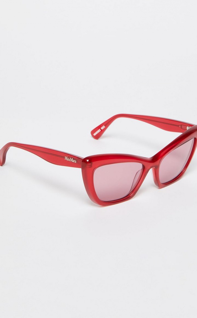 Modern femininity. This cat eye style pair has clean, defined lines and rims that lend character to the acetate frame, which itself is enhanced by angular temples bearing the classic Max Mara logo.Available in bold, modern colours.