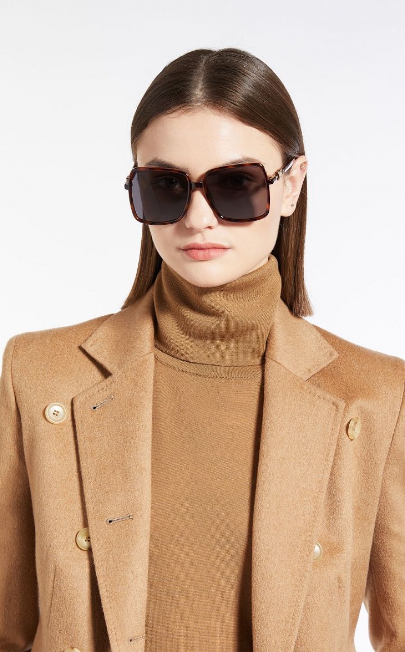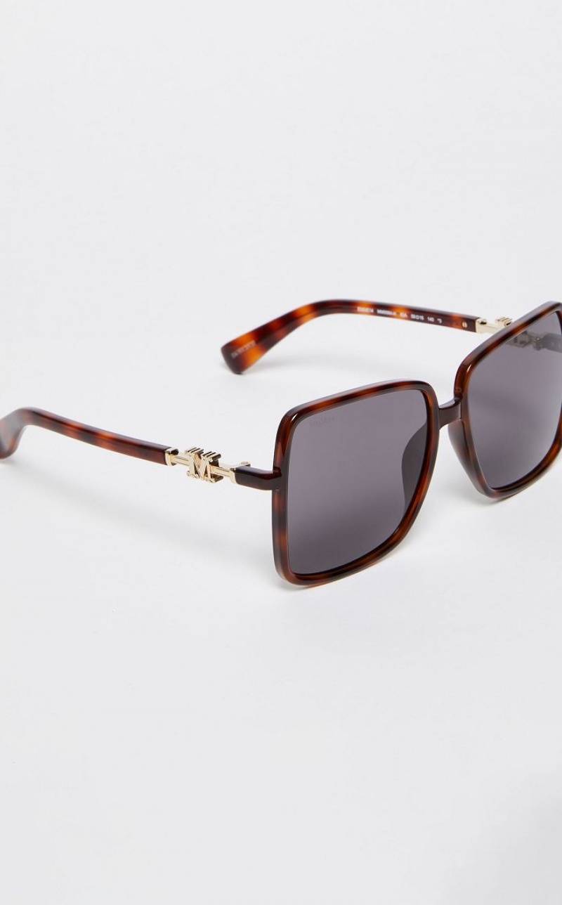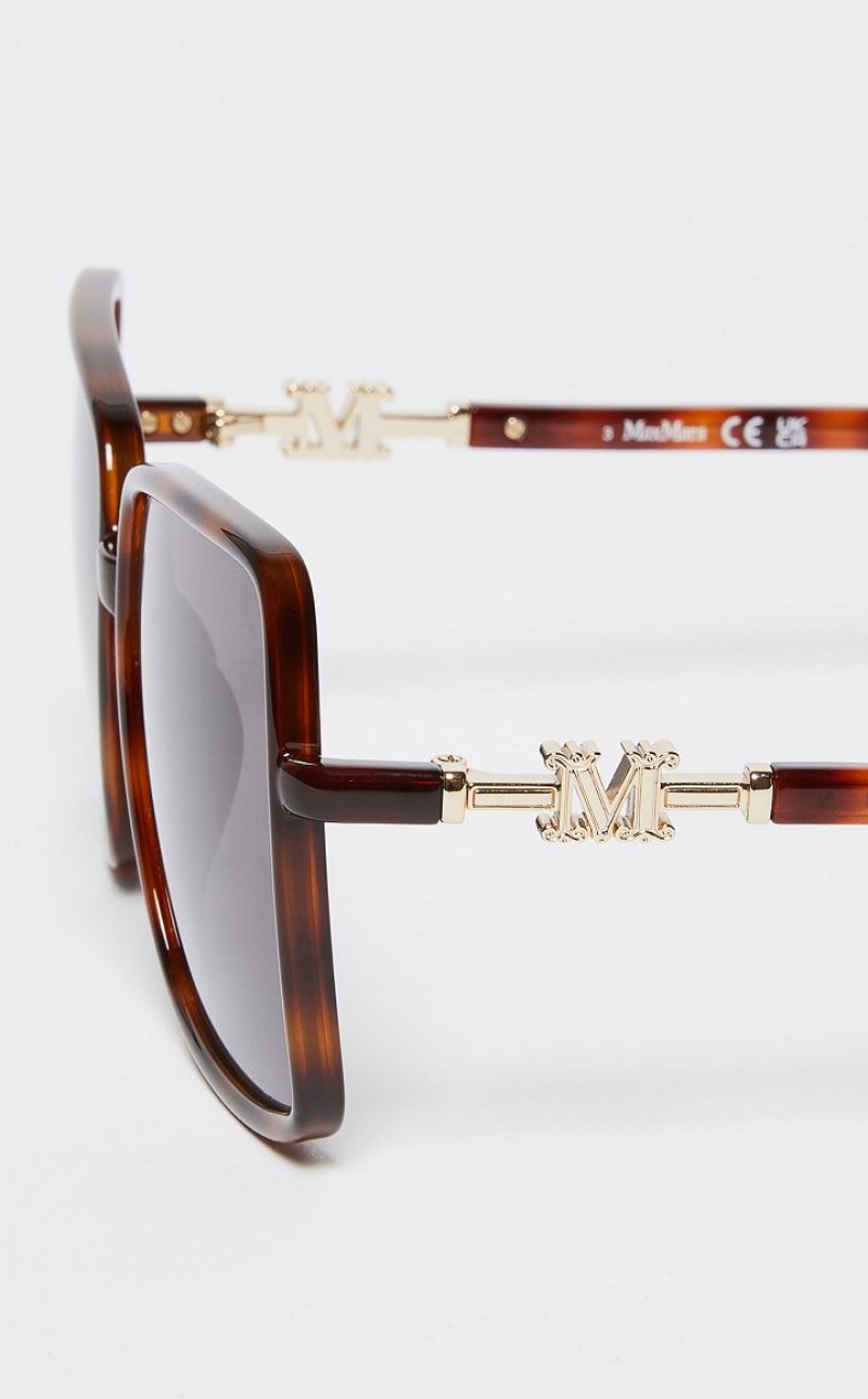 An injected plastic pair with a modern, oversized square designand customised with the new baroque 3D MaxMaragram monogramin the temples.