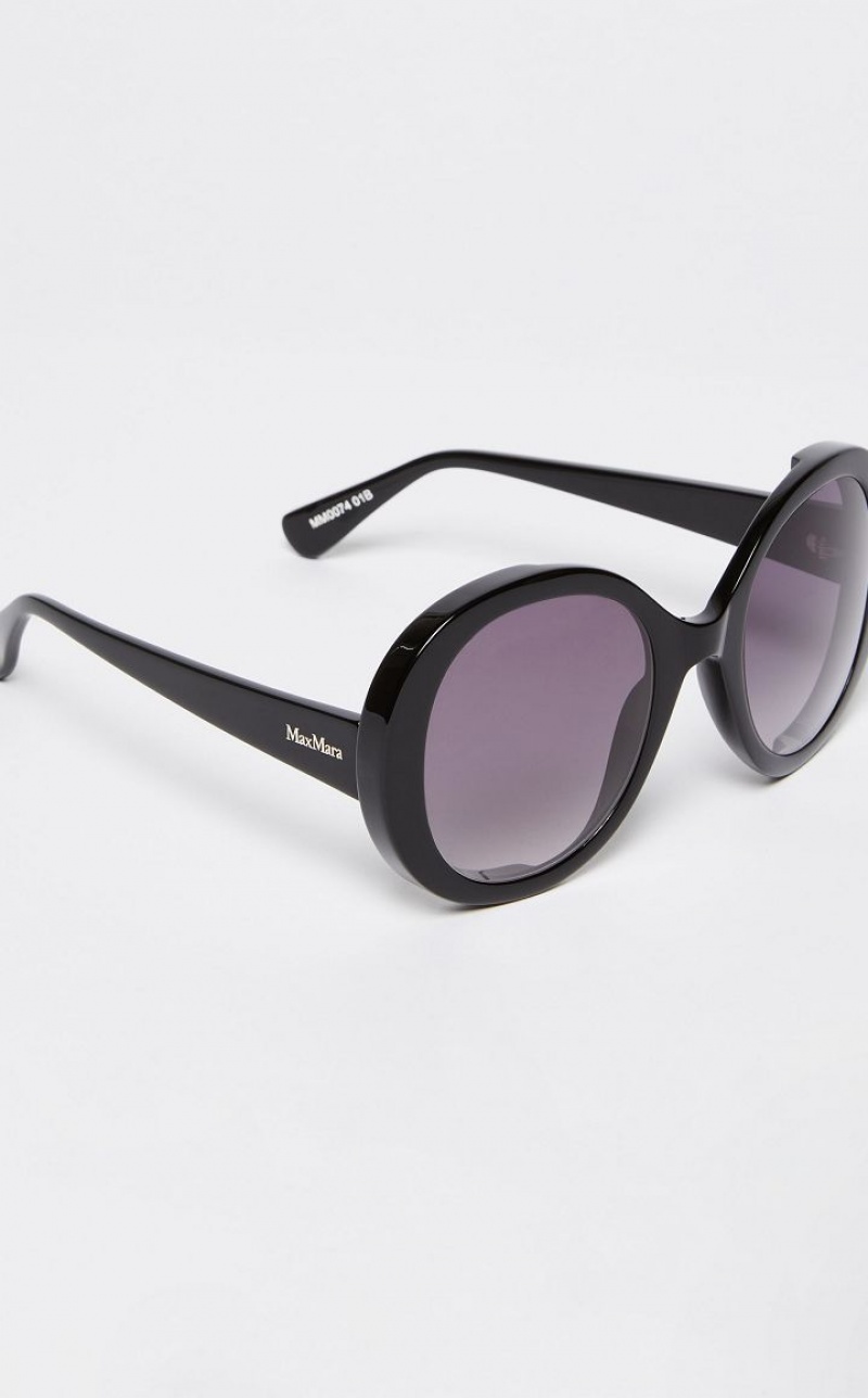 Sunglasses made entirely of acetate, featuring an oversized round frame. The original, feminine design, inspired by the American model and photographer Lee Miller, was the star of the fashion show and the advertising campaign. Embellished with a metal Max Mara logo on the temples. Presented in a customised case.
