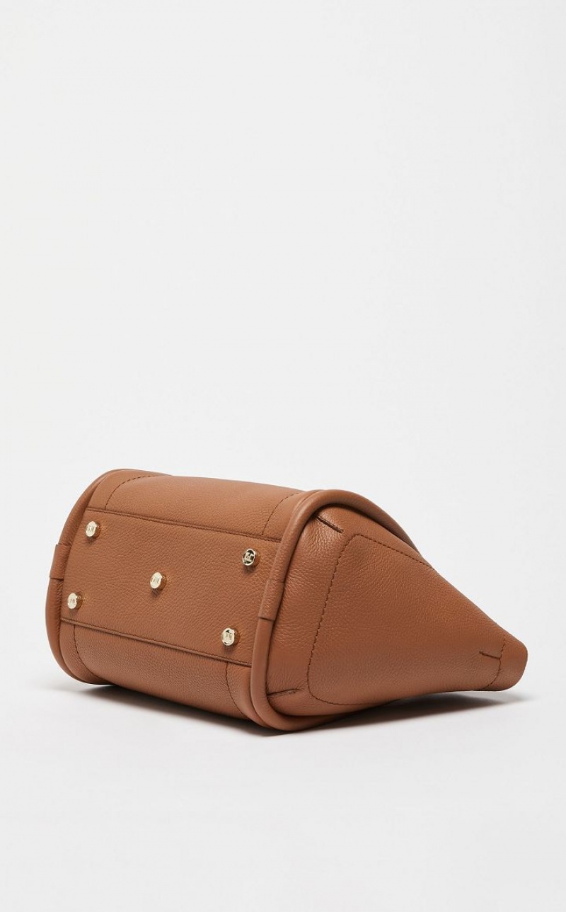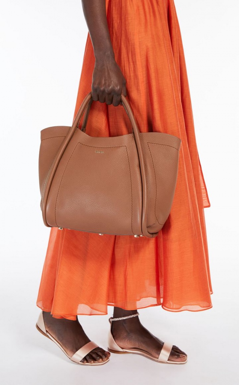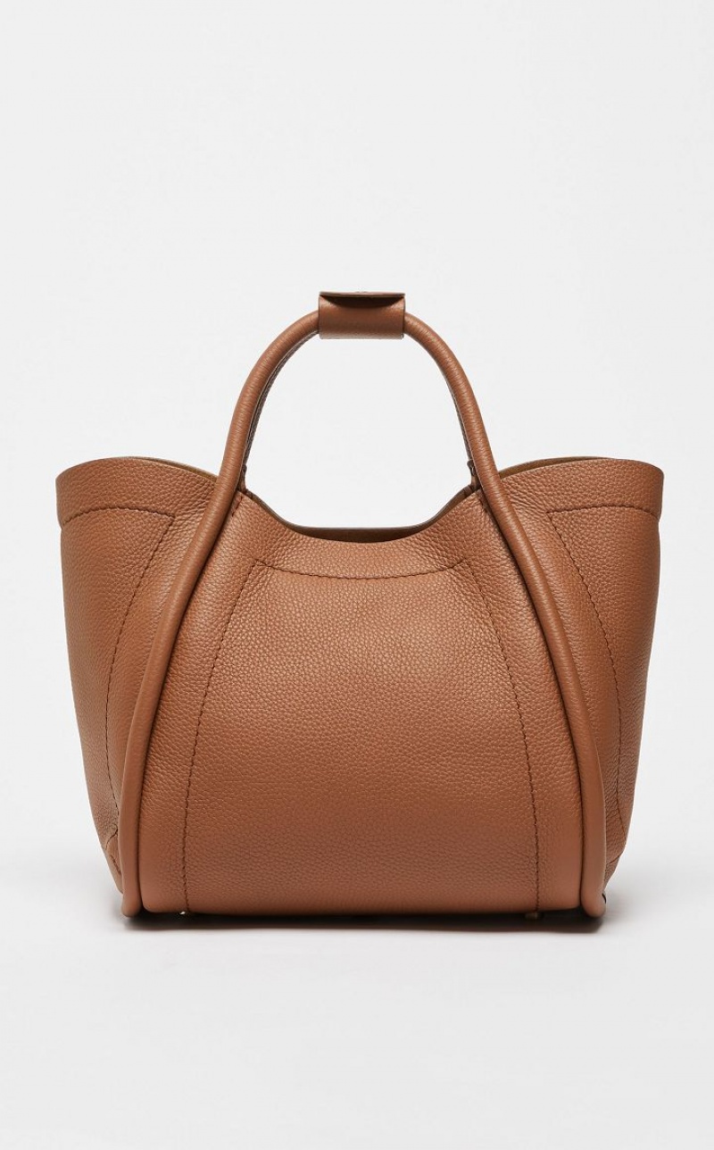 Marine S bag in tumbled calfskin with its characteristic natural texture. A rounded shape and generous dimensions make this exclusive creation stand out, enhancing its versatility. The iconic tubular handles and the adjustable strap with snap buttons allow it to be carried by hand or on the shoulder. Unlined, double fabric bonded effect, with two large pockets on the sides of the inner shell, one flat and the other with zip. Structured and soft, it is finished with long
