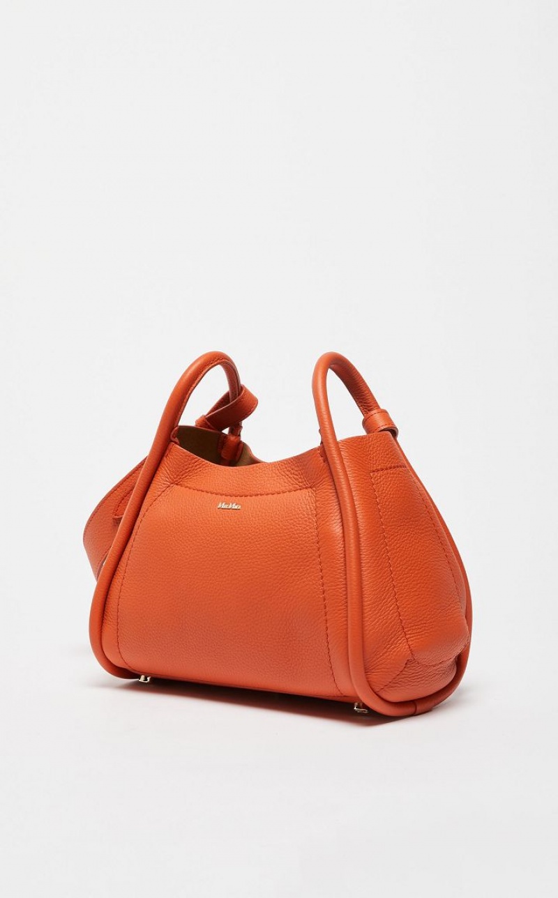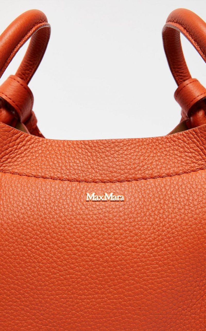Marine bag in calfskin with a characteristic hammered texture. Proposed in a new cross body version with removable shoulder strap, it stands out thanks to its rounded shape and the iconic tubular handles enabling it to be carried by hand. The compact but spacious design is complemented by two internal pockets. Finished with Max Mara metal lettering applied to the front and metal feet. closed at the top by a flap with double magnetic clasp. Dimensions: 23 x 17 x 20 cm.