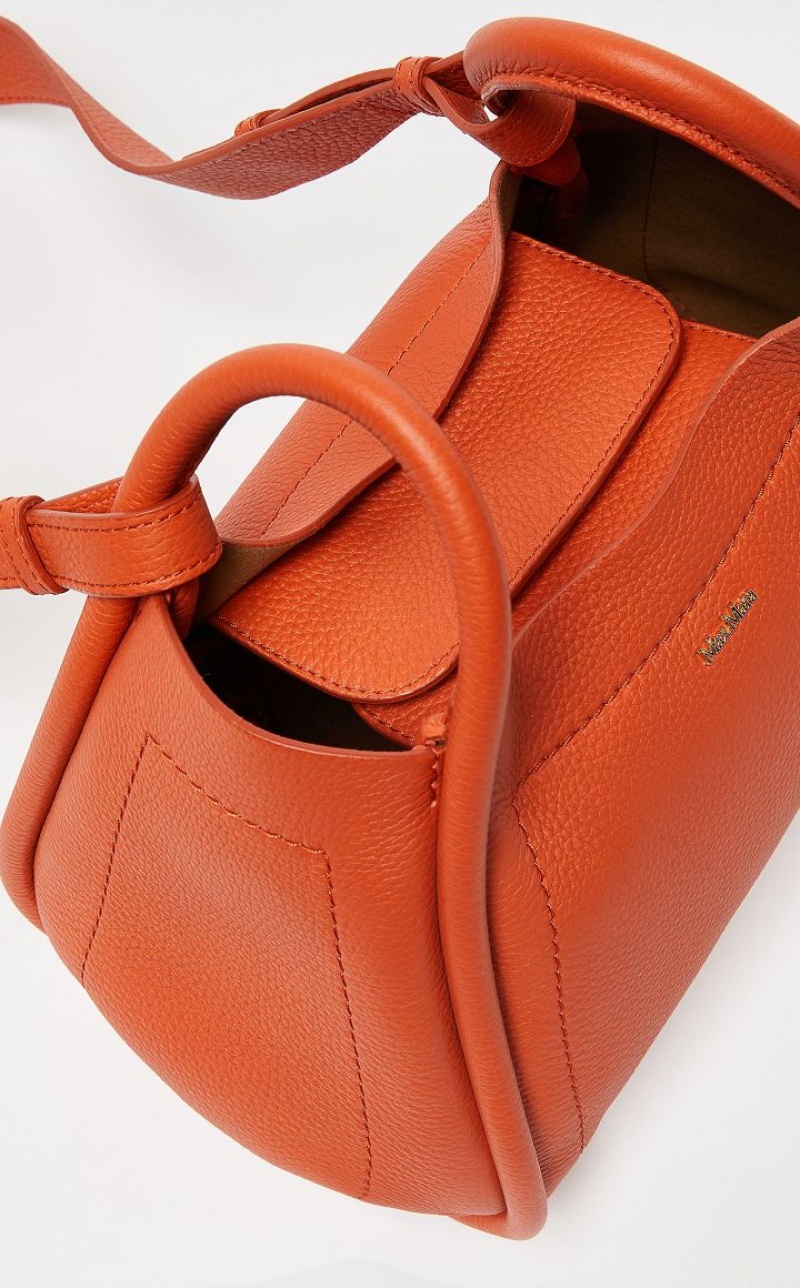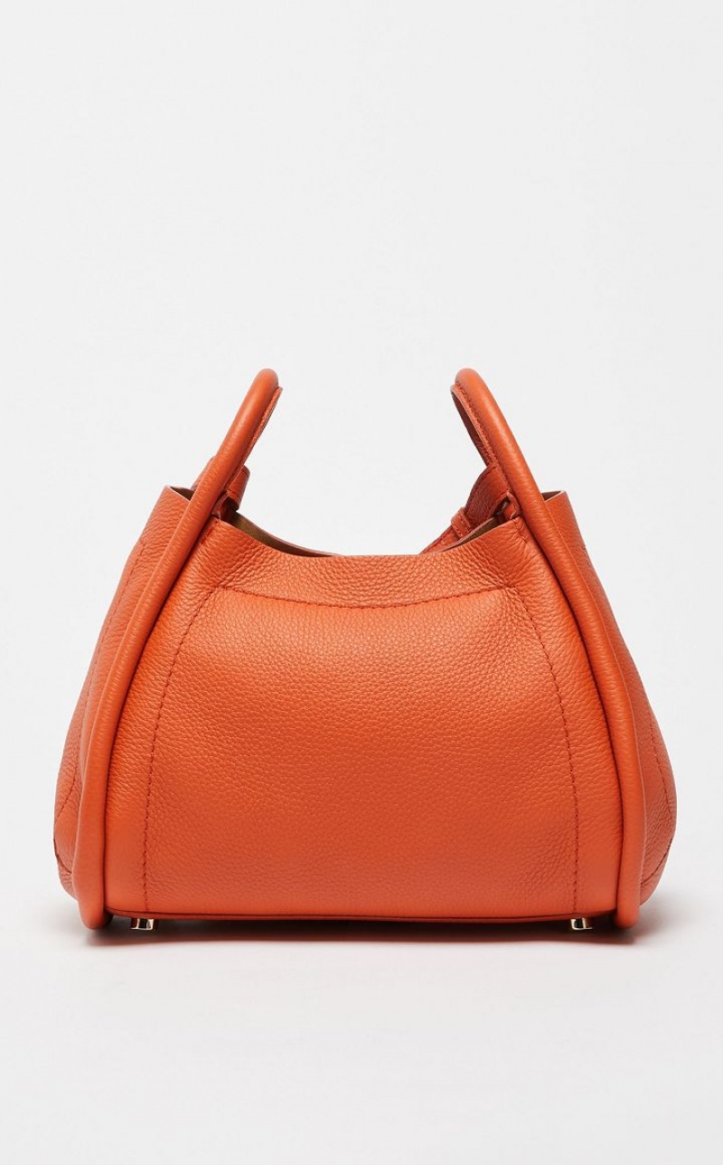 Handbag in calf; lining in 60 nylon, 40 polyurethane.