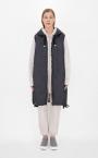 Midi gilet in water-resistant technical fabric with drawstring hood and inseam side pockets. Finished with drawstring hem and zip fastening. This style features Cameluxe padding: a new frontier for upcycling processes that involves recovering leftover pure camel cut-offs from the production of our legendary coats. The fabrics are reused to create a special padding capable of maintaining the same thermal insulation properties as virgin materials, without the need for further consumption of raw materials.
