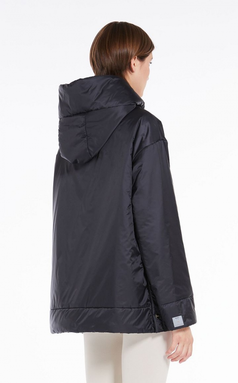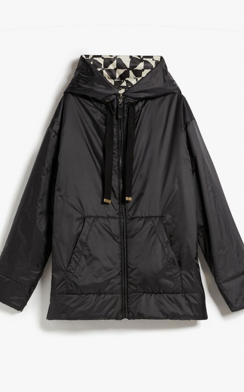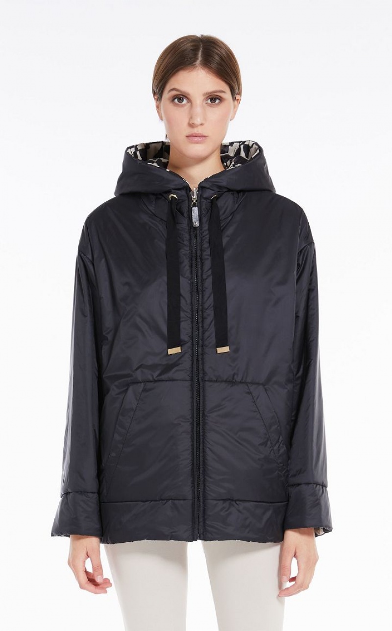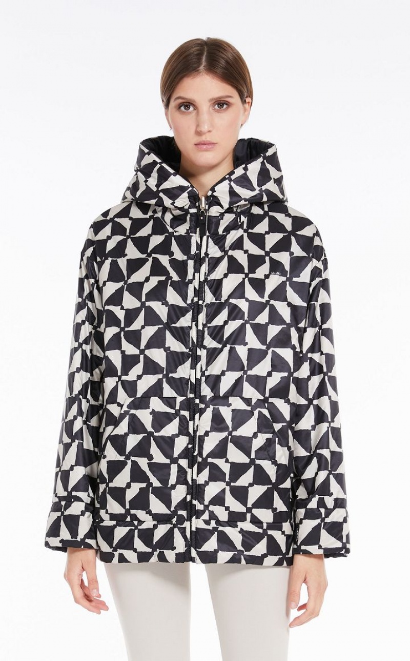 Reversible short padded jacket in water-repellent technical canvas featuring a hood, kangaroo pockets and metal press stud-fastening side slits. One side boasts an all-over geometric print, whilst the other side is plain-coloured. Zip fastening. The Cameluxe padding sets the garment apart: a new frontier as far as upcycling processes are concerned, since any surplus material leftover from the process of cutting the pure camel fabrics for our legendary coats, is recovered. These pieces of fabric are then reused to create a special padding material that boasts the same insulating properties as virgin materials, without needing to use any more raw materials. Length: 72 cm.