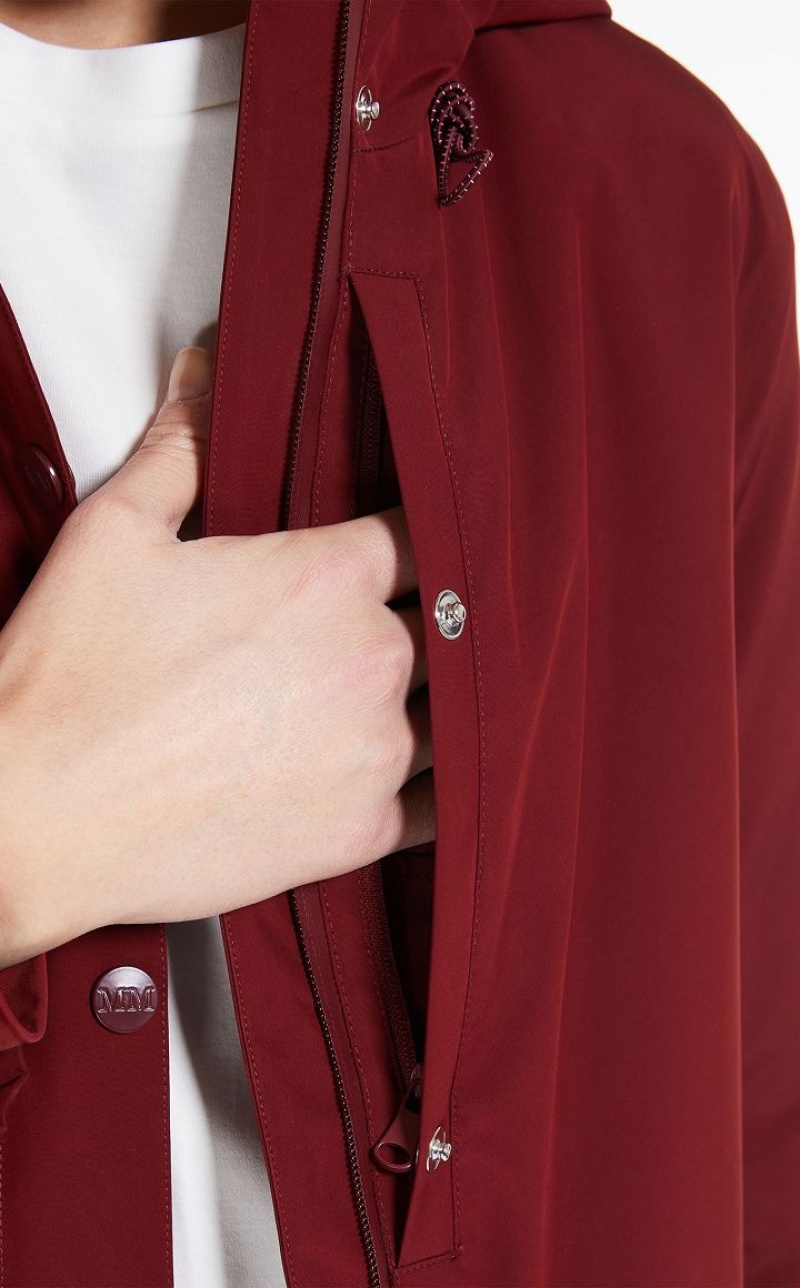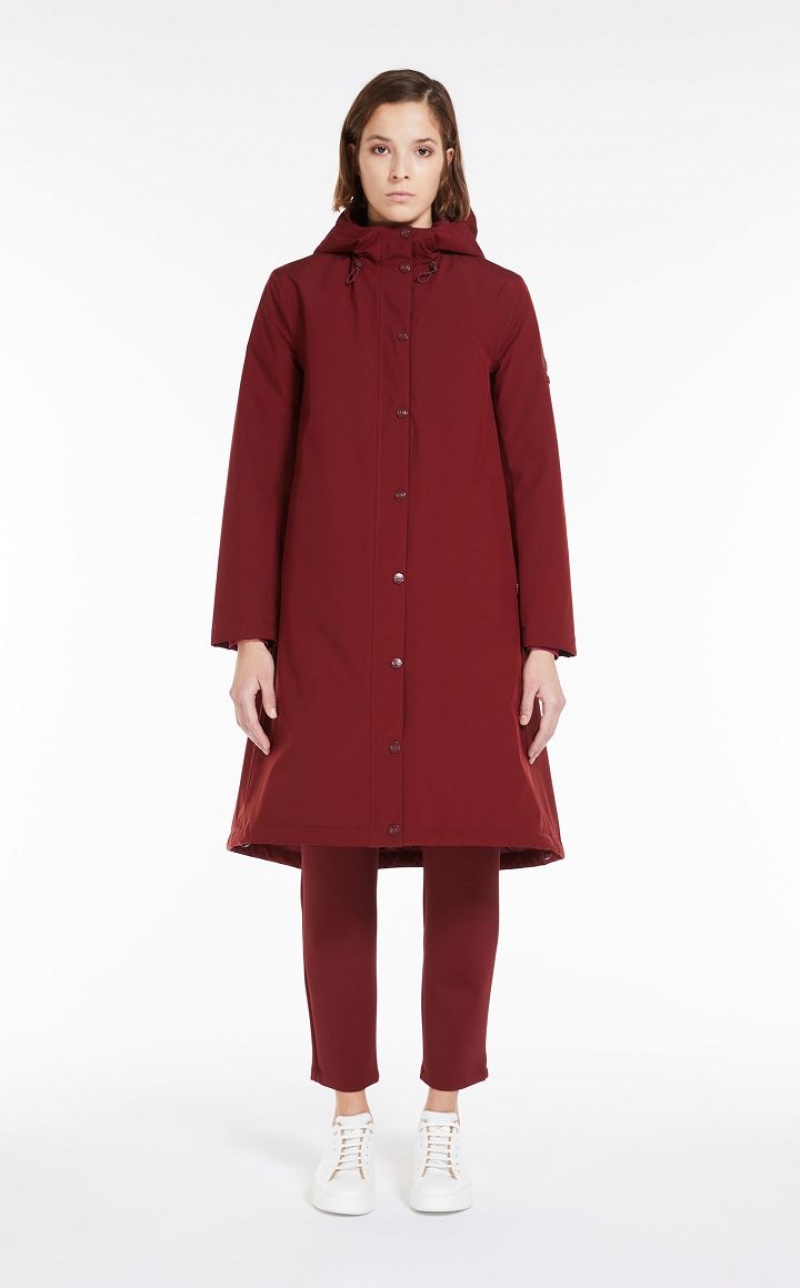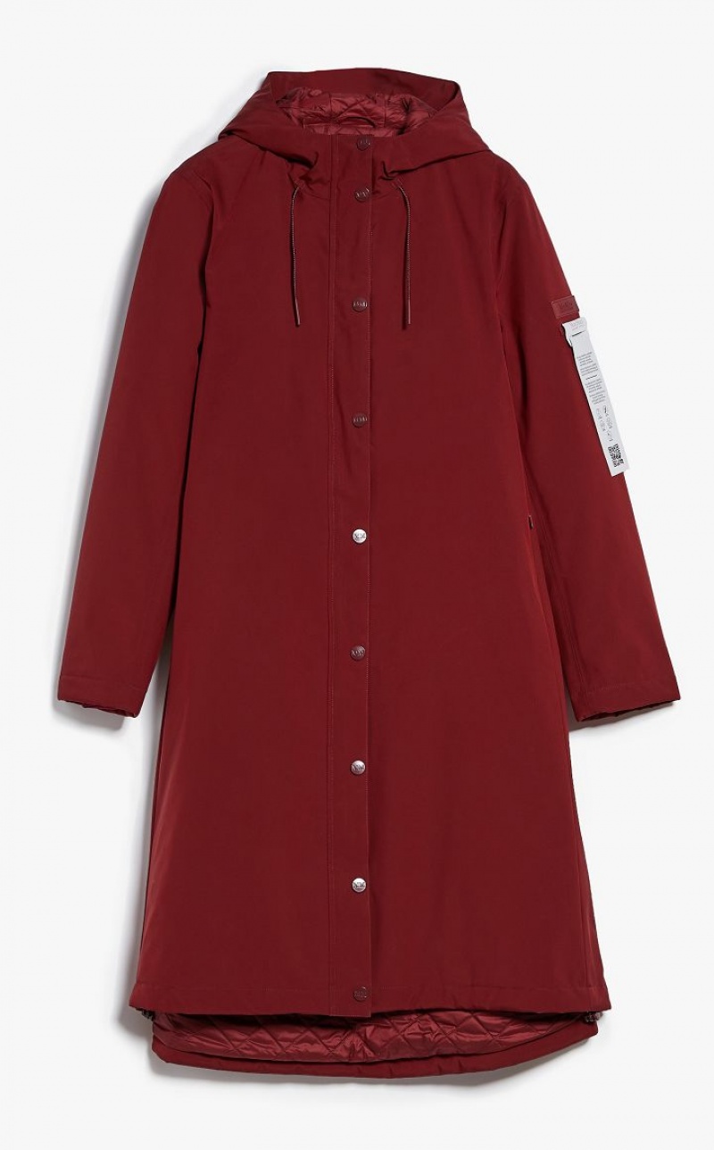 Midi parka with hood made of multilayer rubberised effect technical canvas. The internal Luxepad Ultra-fine Insulating Technology 100 g padding is designed to retain and optimise body heat, even in cold temperatures. Waterproof and windproof A-line style, embellished with a quilted motif inside, heat-sealed seams, padded hood with drawstring and internal windproof cuffs in technical jersey. Side pockets with concealed zip and Napoleon pocket. Front double slider zip fastening and snap-button flap. Features a dedicated label embroidered on the inside and QR Code tag on the outside. Length: 111 cm.