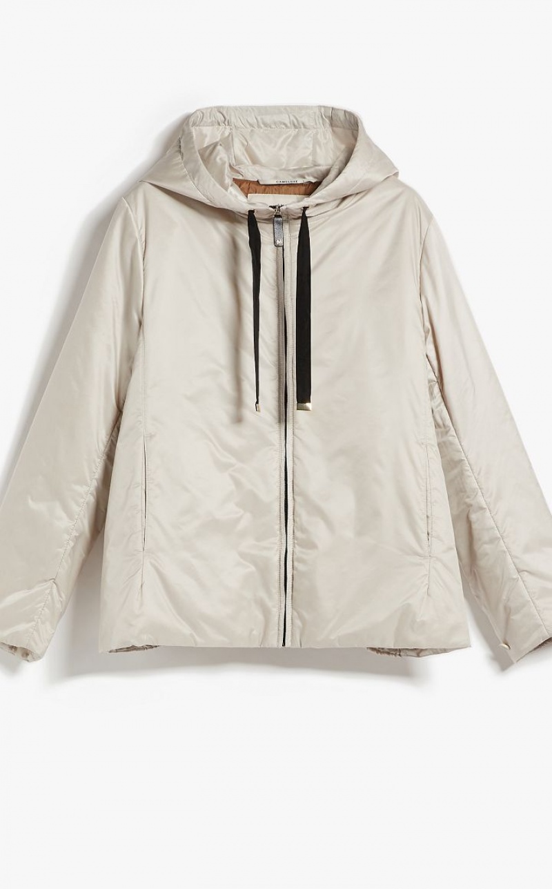Travel jacket in water-resistant technical canvas with a drawstring hood and inseam side pockets. Zip fastening. This style features Cameluxe padding: a new frontier for upcycling processes that involves recovering leftover pure camel cut-offs from the production of our legendary coats. The fabrics are reused to create a special padding capable of maintaining the same thermal insulation properties as virgin materials, without the need for further consumption of raw materials.