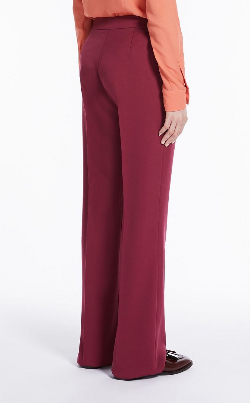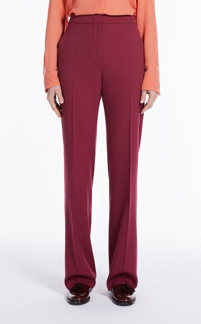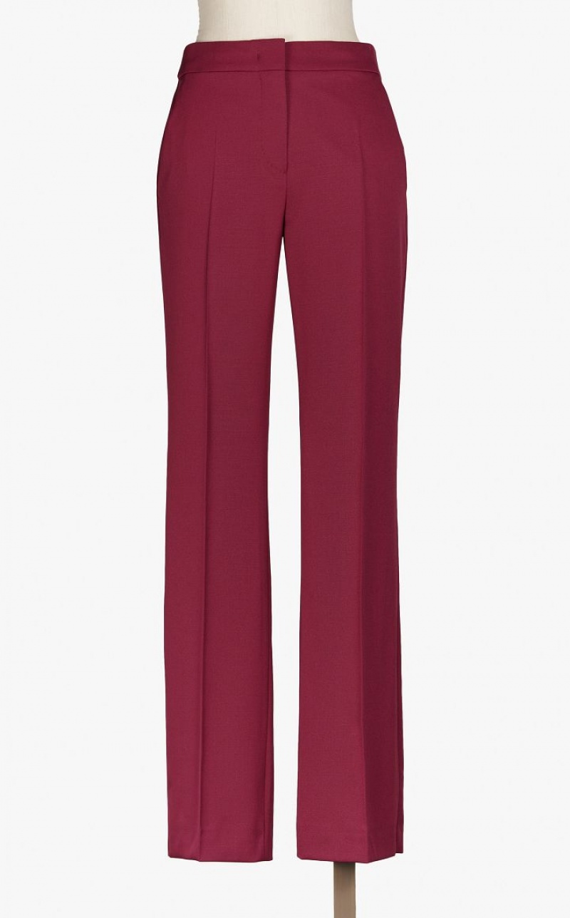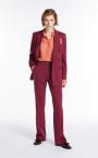 Trousers with a straight leg slightly flared at the hem, made of fine, slightly elastic granité wool. The fabric, made from combed wool fibres that are extremely soft to the touch and have a refined look, boasts a wavy, semi-matte texture suitable for all seasons. The masculine-inspired tailored construction is completed by a trouser crease on the leg and pockets on the sides. Fastening with wide customised waistband, flap with zip and small hook.