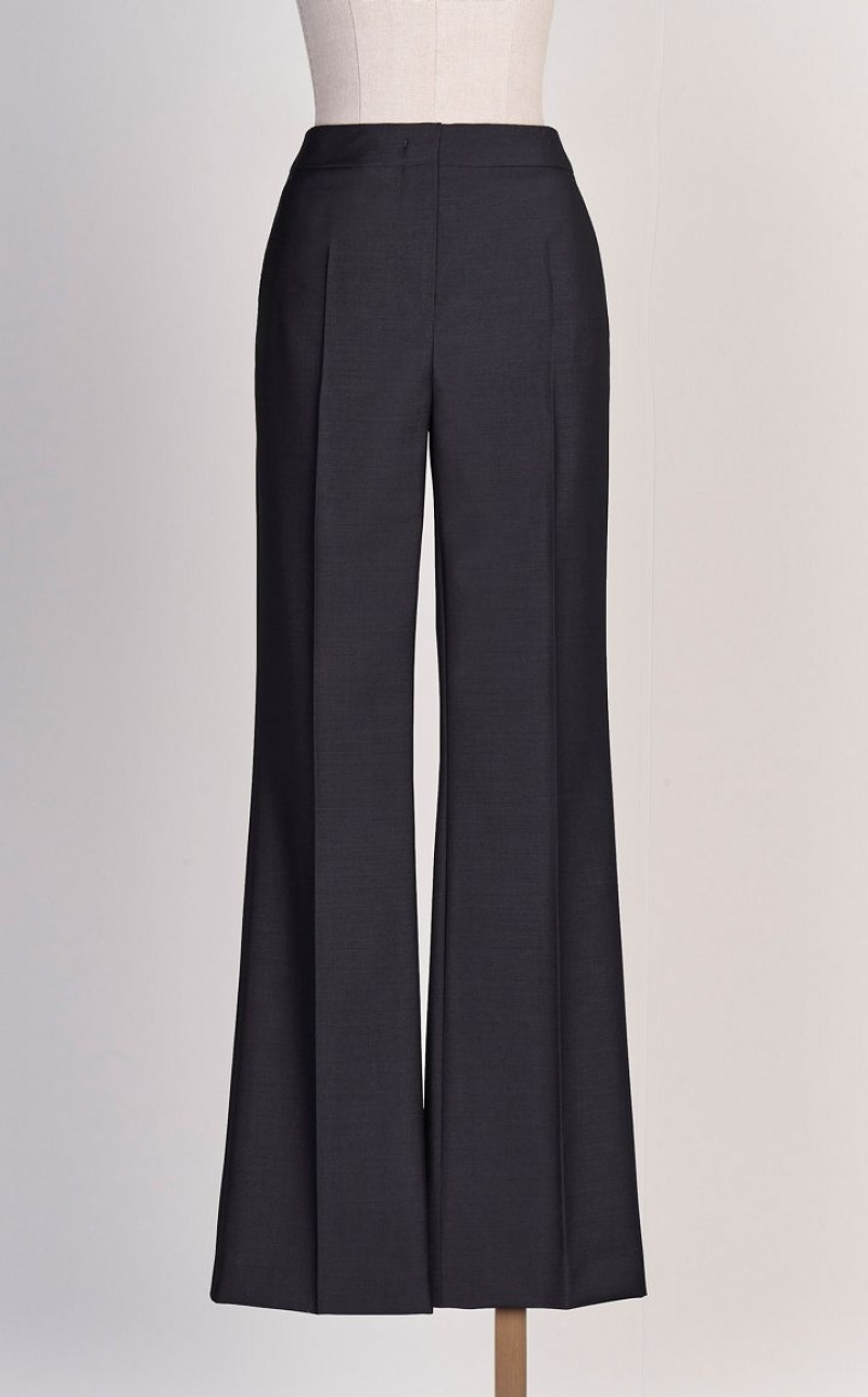 Men’s style trousers in virgin wool and mohair fabric with an iridescent effect, lightweight and fresh, ideal for all seasons. Straight line, slightly flared at the hem, with slash pockets on the sides and trouser crease on the leg. Internal construction with contrasting trim. Fastened with a personalised waistband, covered zip and small hook.