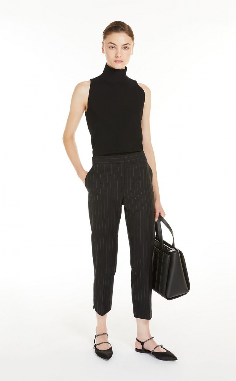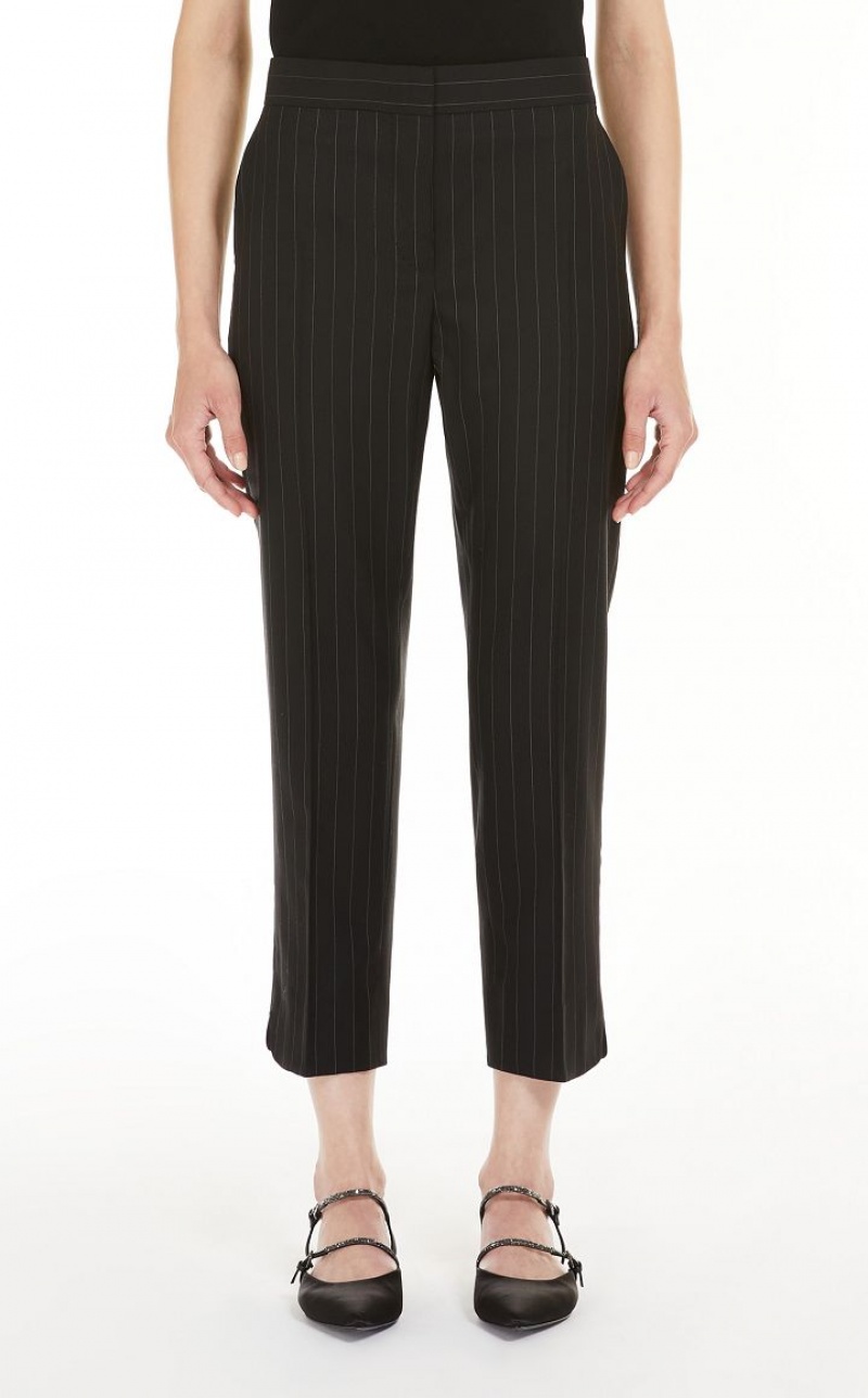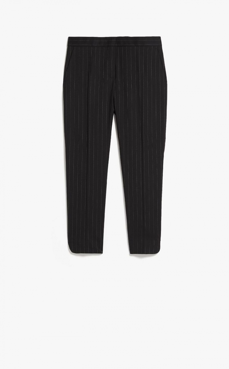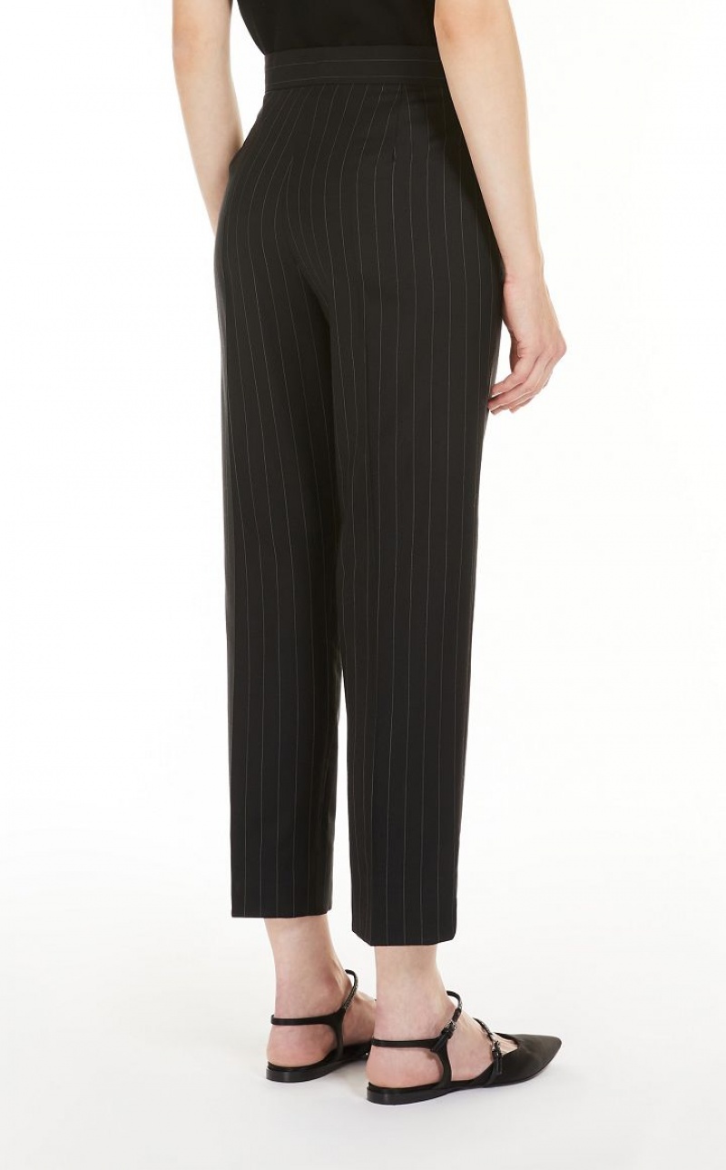 Cigarette trousers made of exquisite pure virgin wool fabric, with a trouser crease along the leg, side slant pockets and small side vents on the hem. Fastening with wide waistband, flap with zip and small hook.