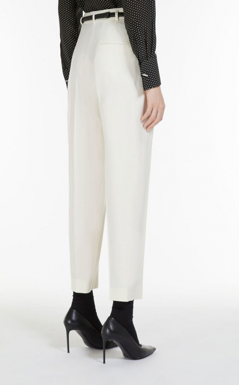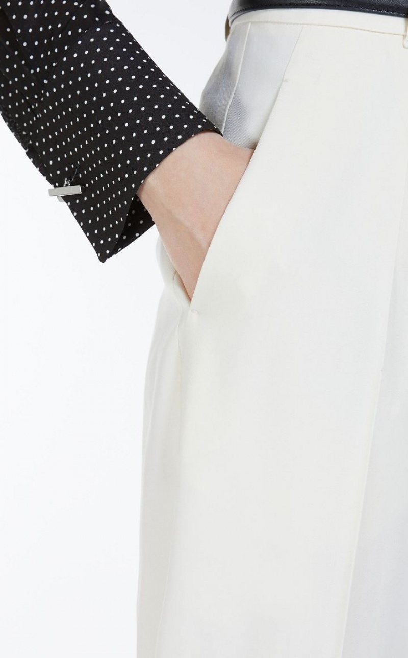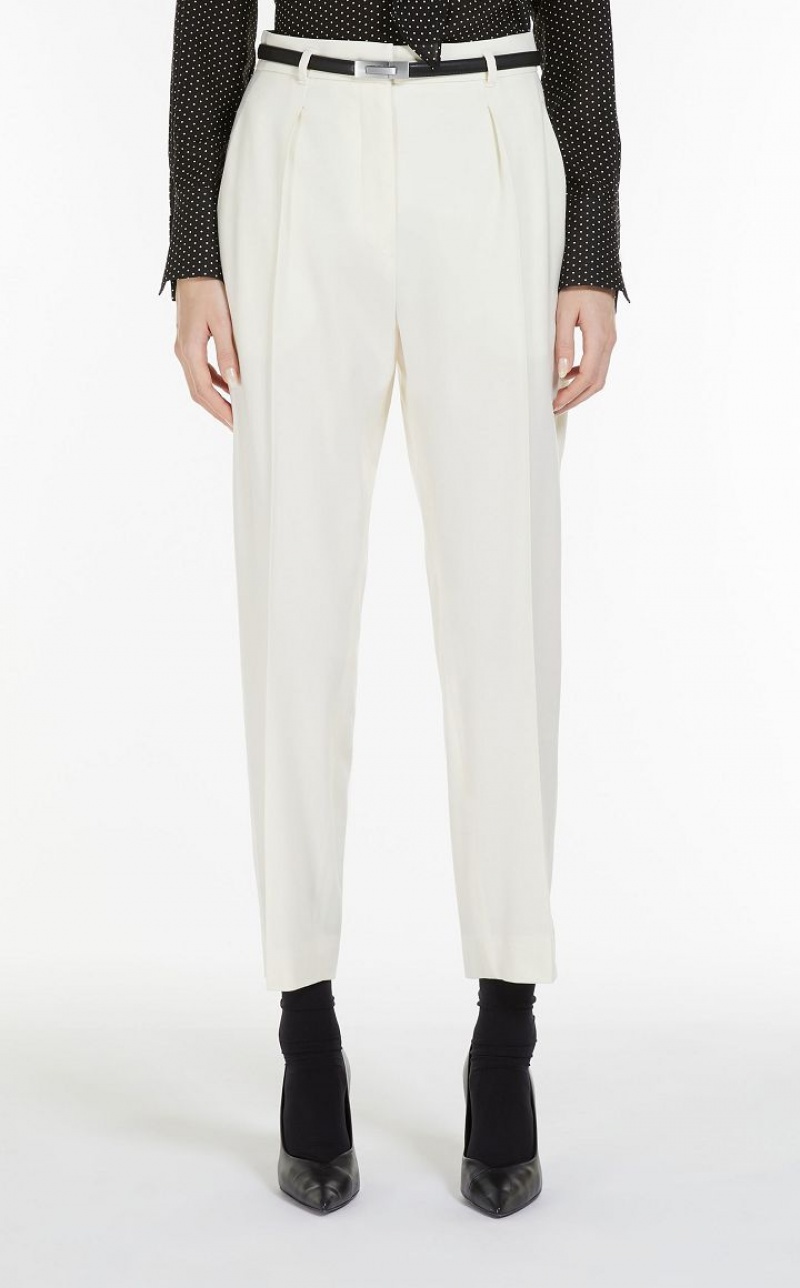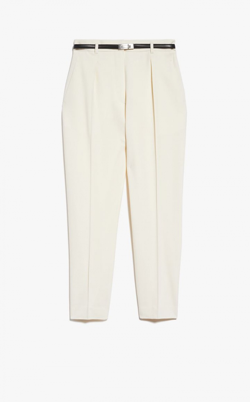 Wool twill carrot-fit trousers cropped above the ankle. Style with matching belt, pleats on the front and trouser crease down the leg. Slant pockets at the sides and welt pockets at the back. Fastening with high waistband tab, zip fly and small hook. Length: 100 cm.