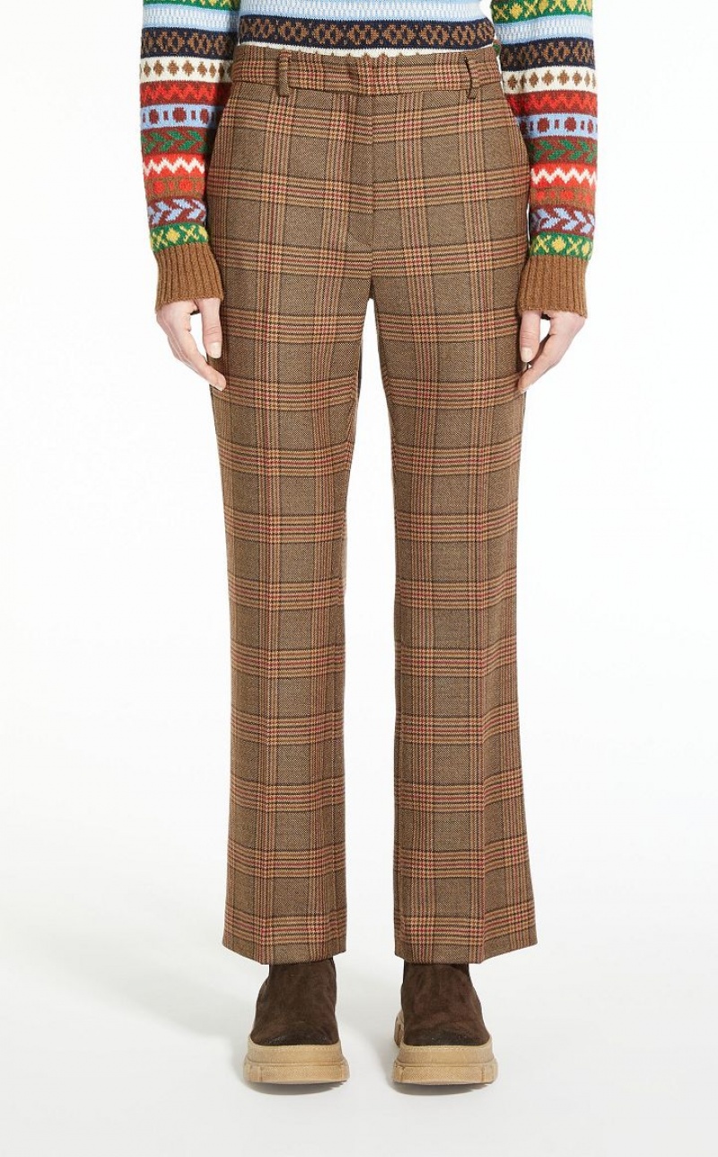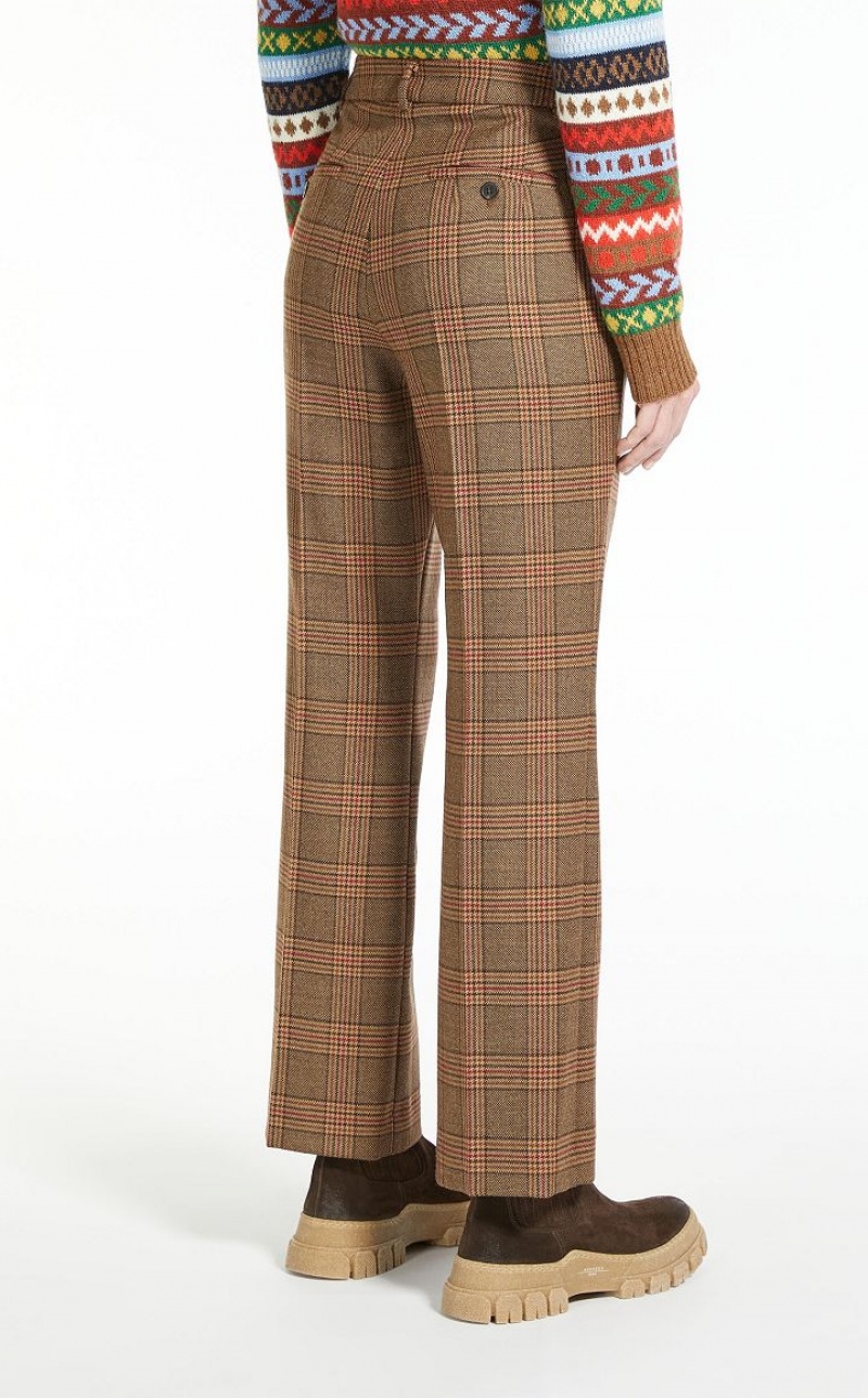Slightly flared trousers in pure wool twill fabric. Waistband, central pressed pleat detail, slant front pockets and buttoned welt rear pockets. Zip and hook and bar fastening.